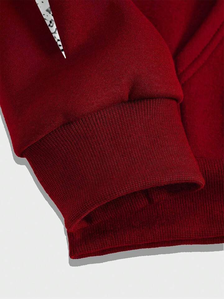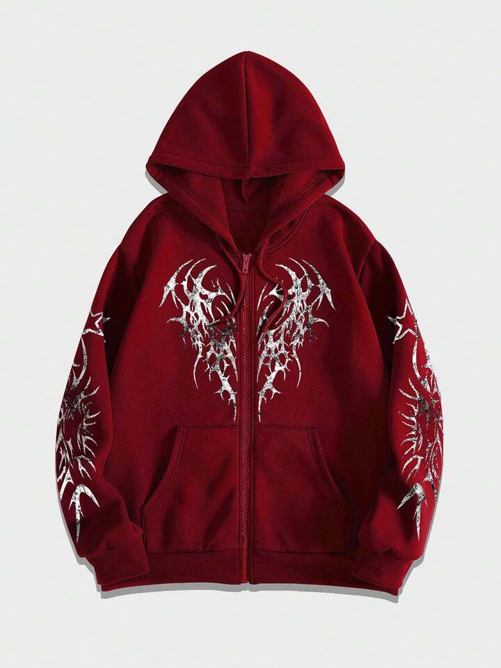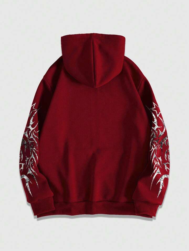 Felpa con cappuccio da uomo con stampa gotica, chiusura lampo frontale e coulisse