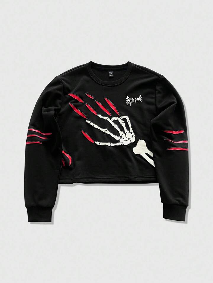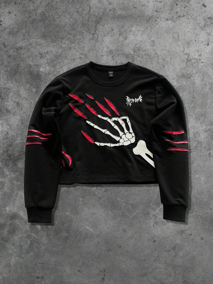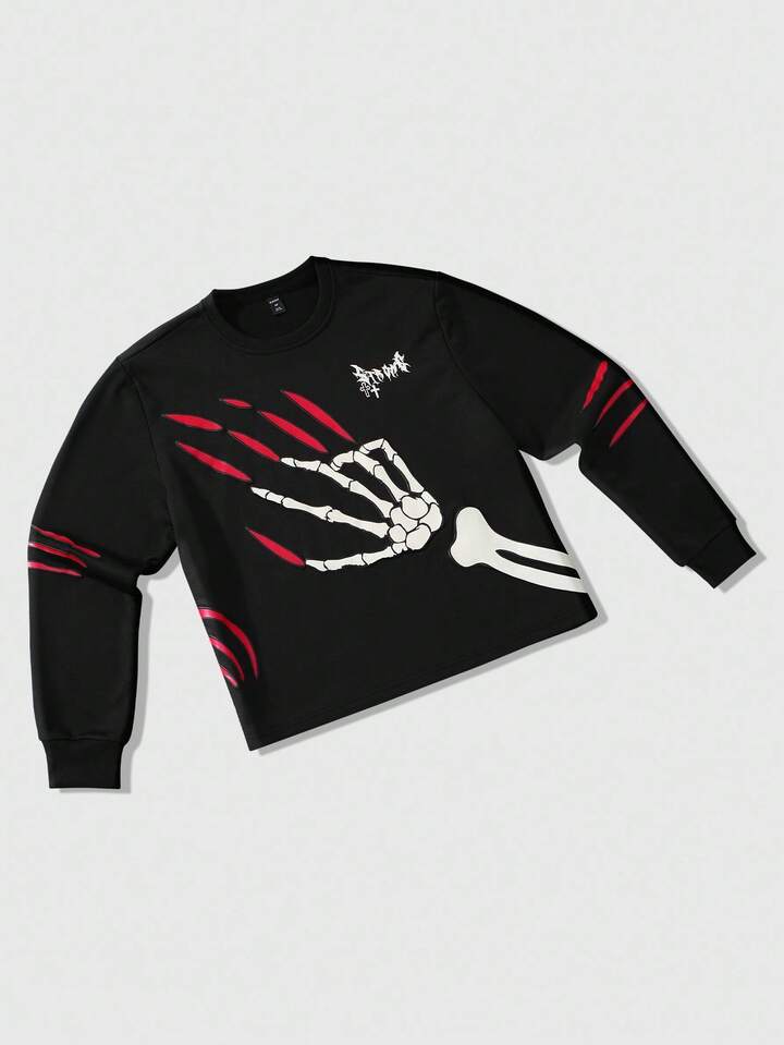 Goth Felpa con stampa teschio gotica da uomo, adatta per l'autunno/inverno