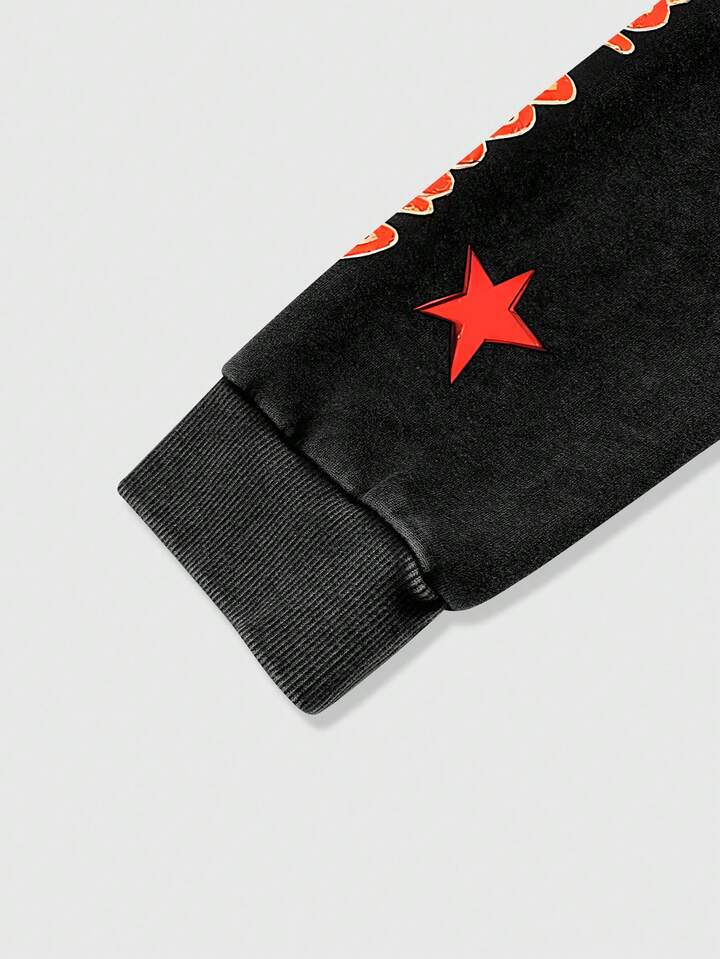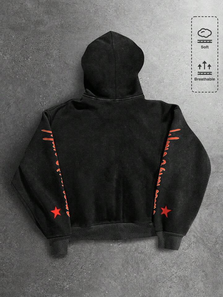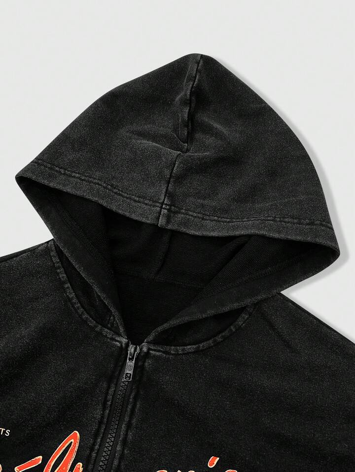 Felpa con cappuccio da uomo, con stampa di lettere e numeri, con chiusura lampo frontale, casual e versatile per uso quotidiano, manica lunga, adatta per autunno/inverno