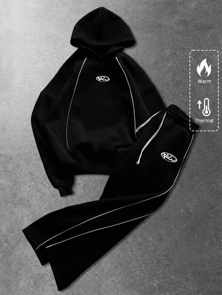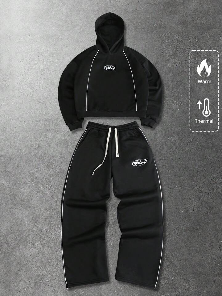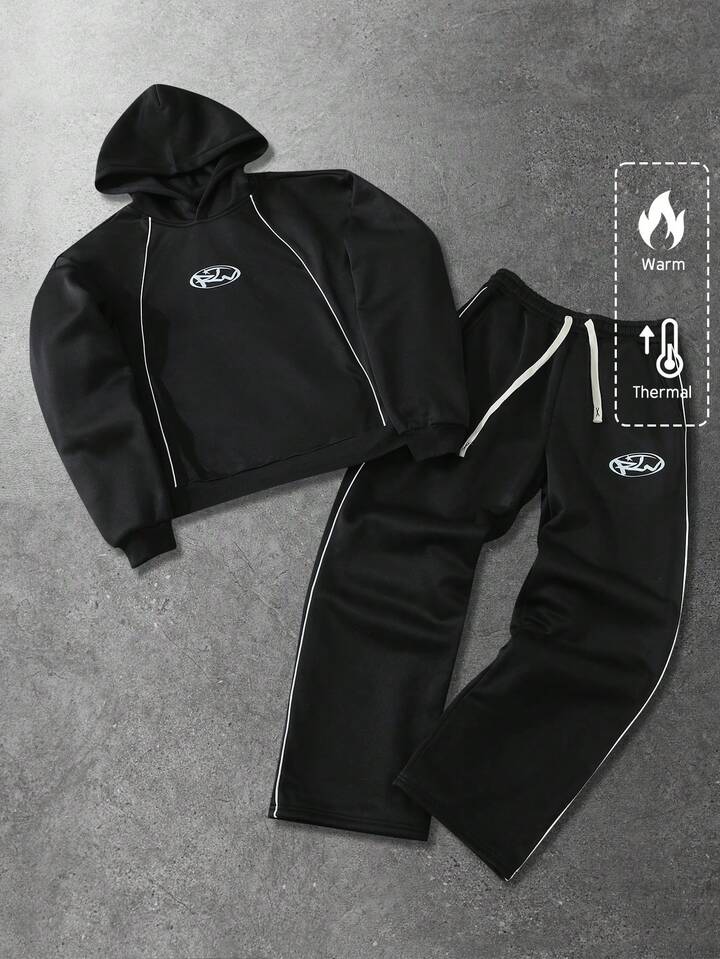 Tuta con cappuccio da uomo, set casual con felpa con cappuccio e stampa in inglese americano, autunno/inverno