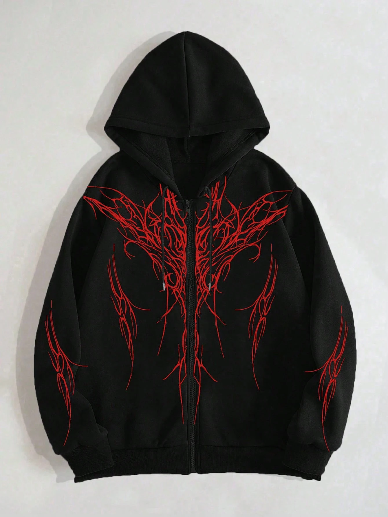 Goth Felpa con cappuccio e chiusura lampo, con cordino, casual, manica lunga, per uomo (disponibile)