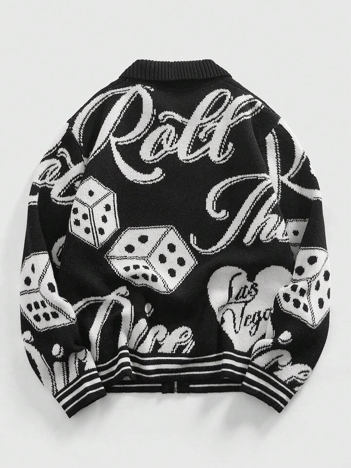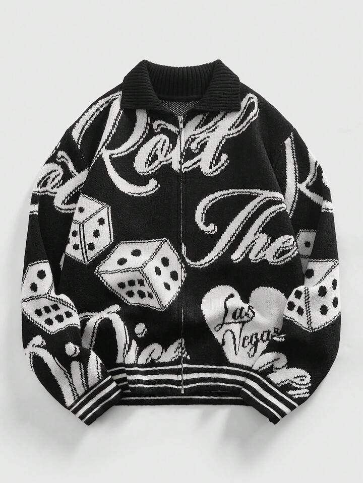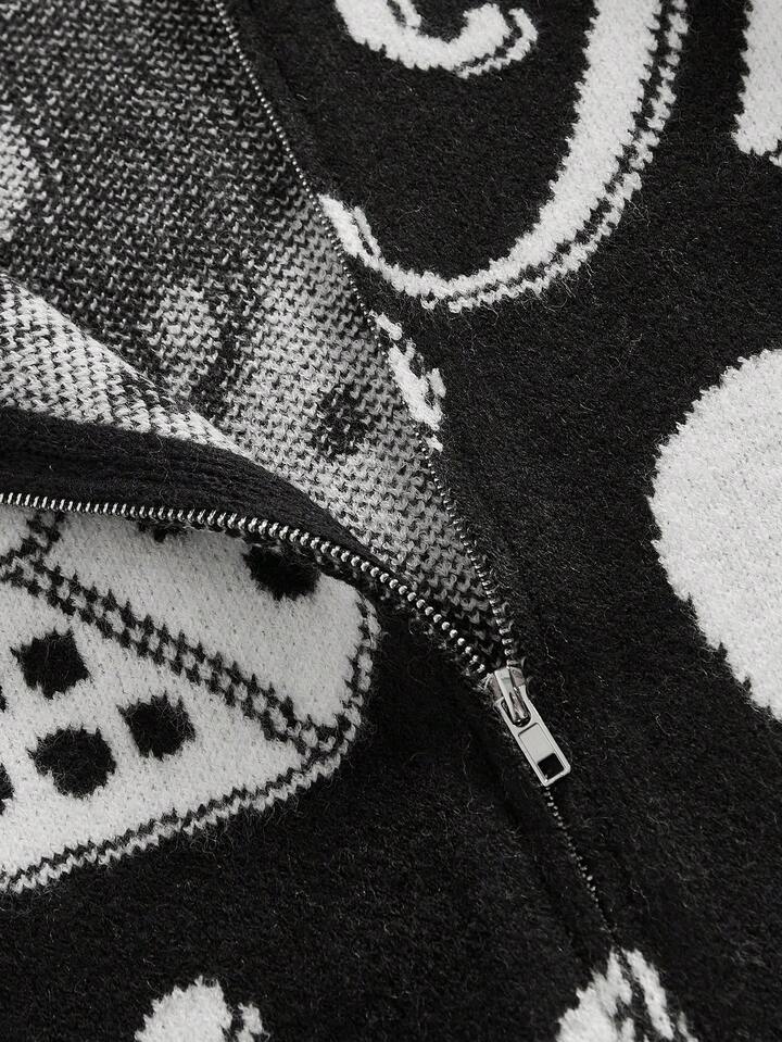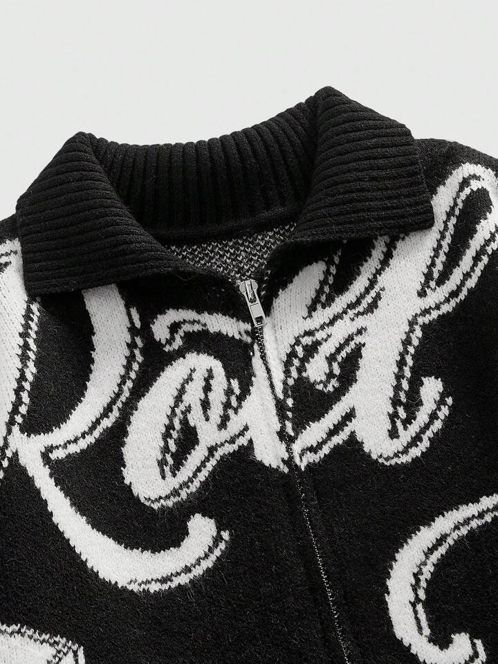 Cardigan da uomo in maglia jacquard, moda streetwear scura