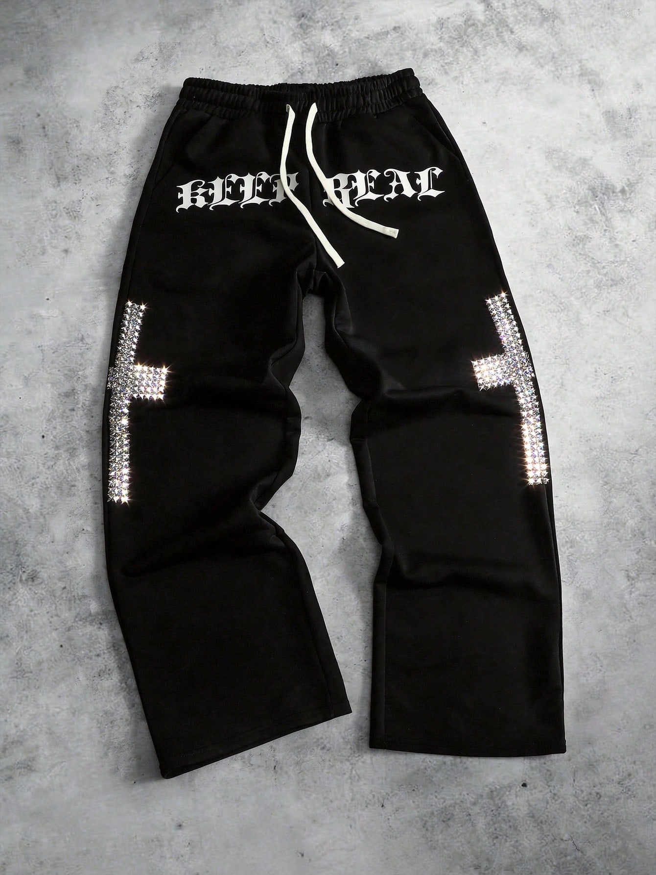 Pantaloni della tuta da uomo con stampa di lettere, vita con coulisse e tasche, modello ampio