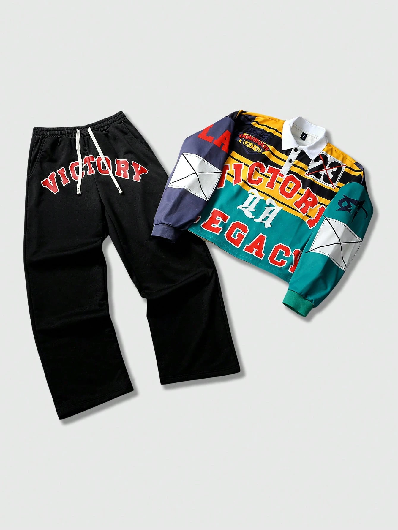 Completo sportivo da uomo con polo a maniche lunghe con stampa di lettere e pantaloni lunghi con coulisse in vita