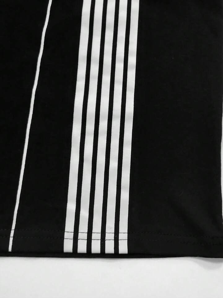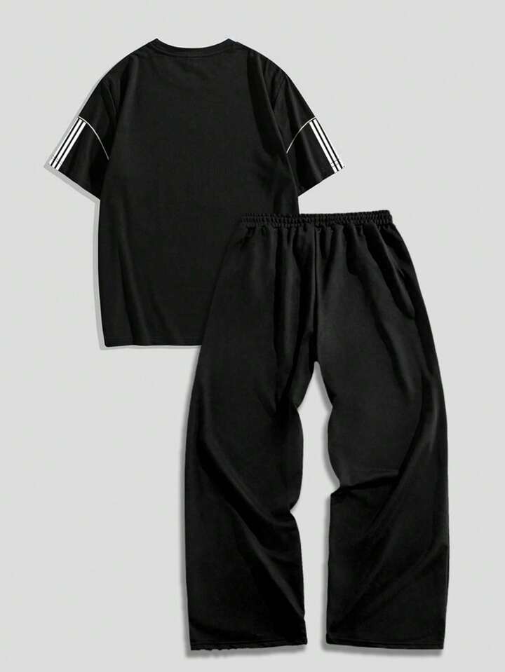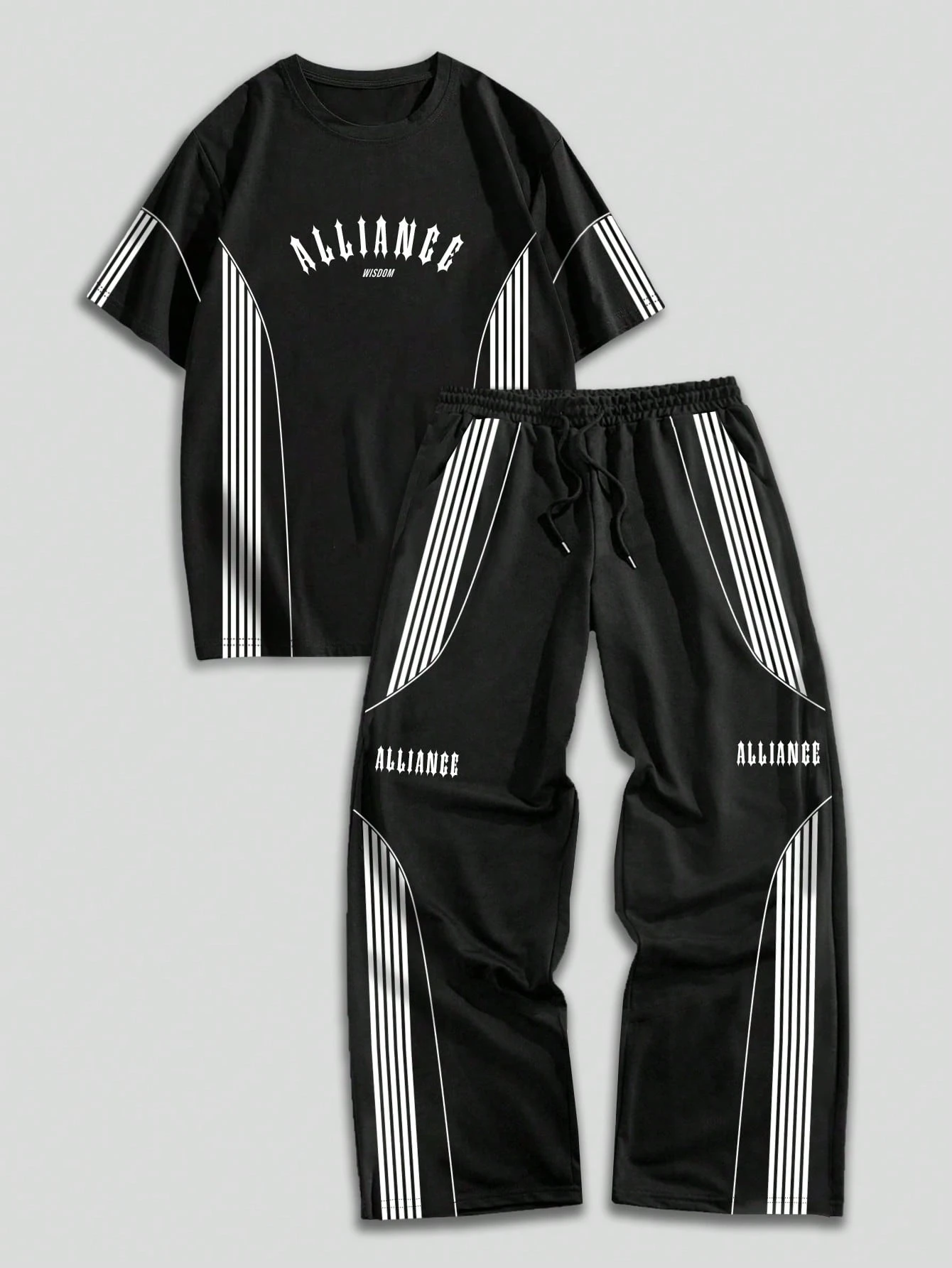 Set di t-shirt a maniche corte con scollo rotondo con lettera e righe e pantaloni casual con vita con coulisse per uomo