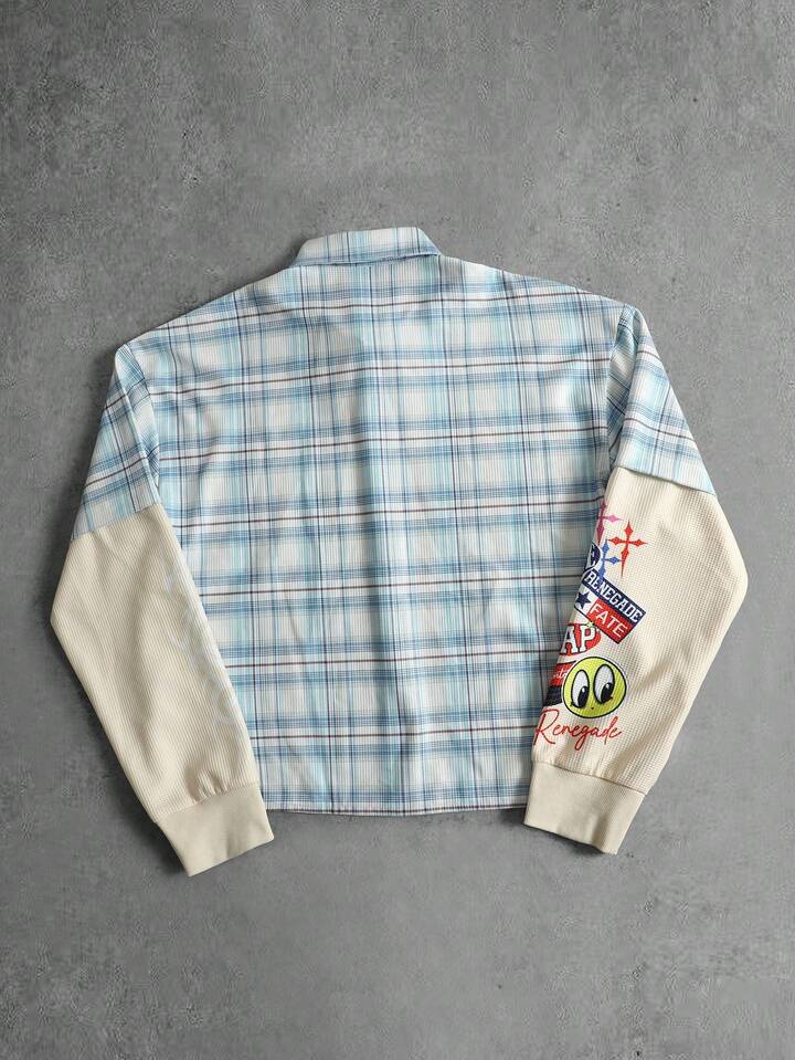 Camicia a maniche lunghe da uomo con vestibilità ampia, 2 in 1, a quadri, con doppio strato di maniche
