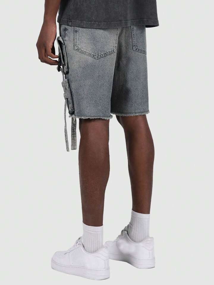 Pantaloncini larghi cargo in denim uomo con orlo sfrangiato, adatti per la scuola