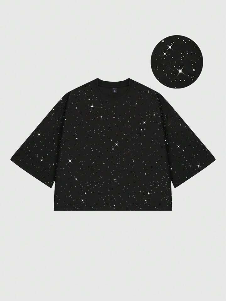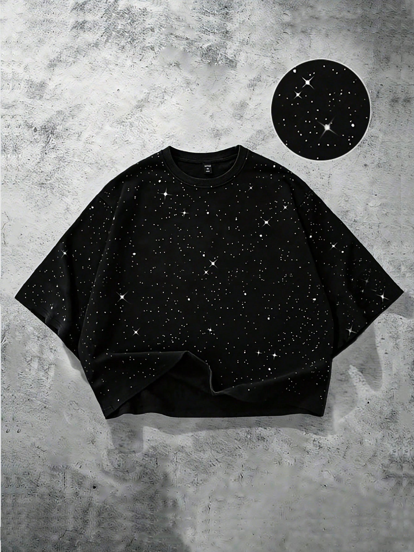 Maglietta da uomo con maniche a 3/4, vestibilità ampia, decorata con paillettes