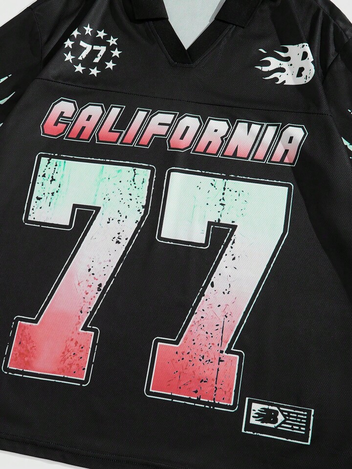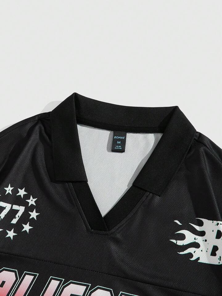 Prep Polo a maniche corte da uomo con scollo a V e stampa di lettere, casual