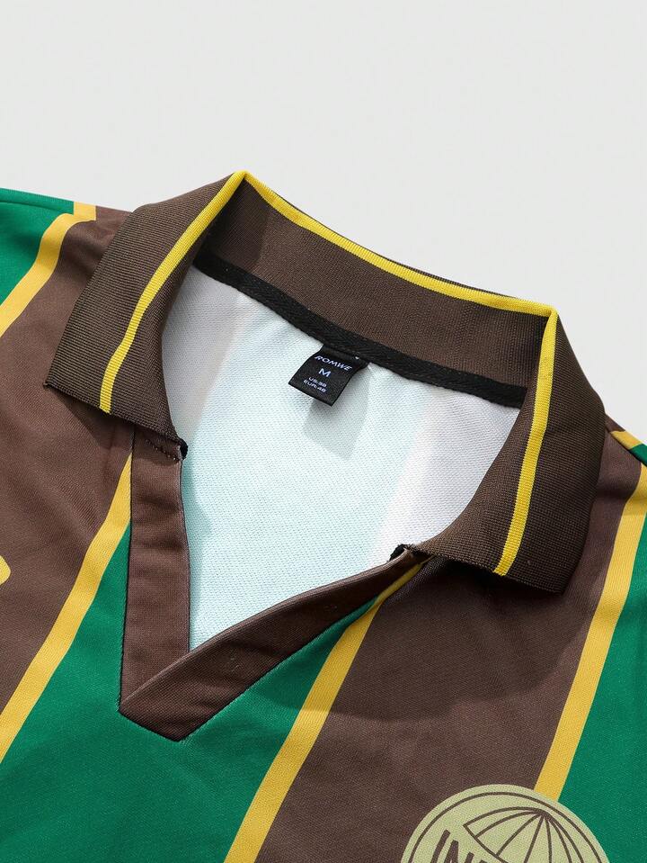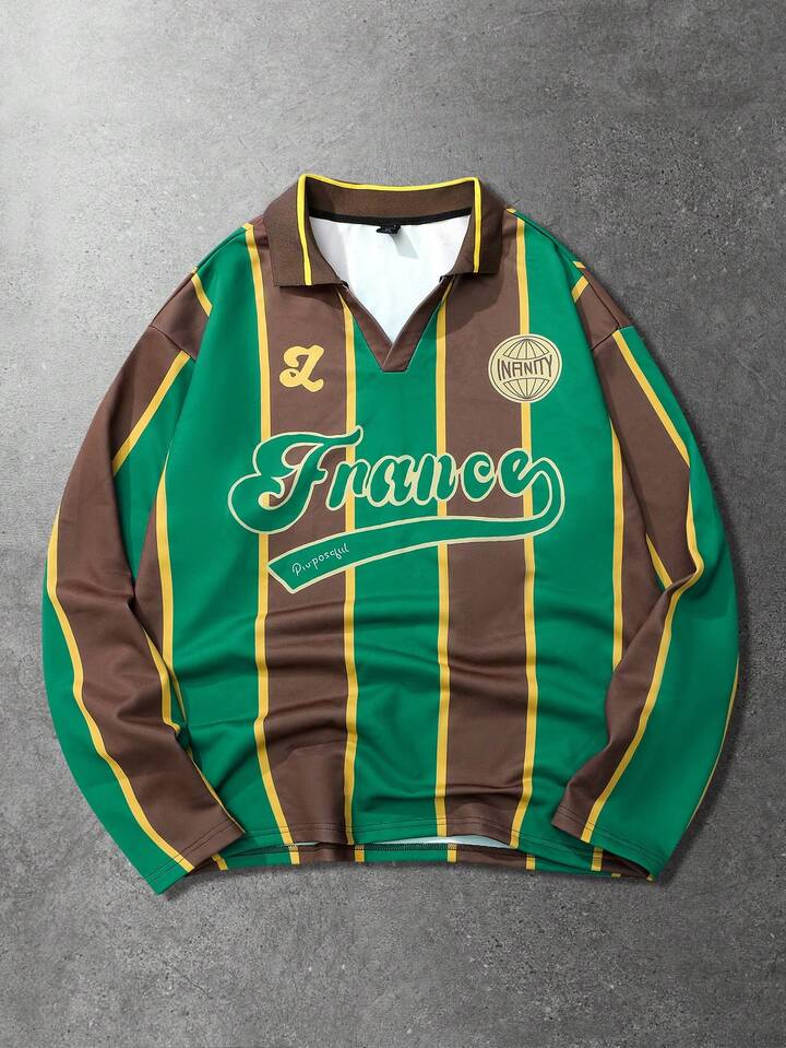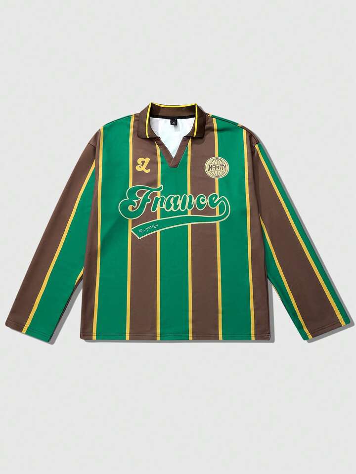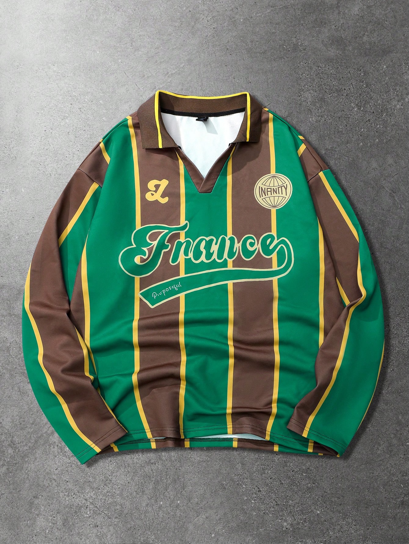 Maglietta casual a maniche lunghe con colletto polo e righe, modello ampio da uomo