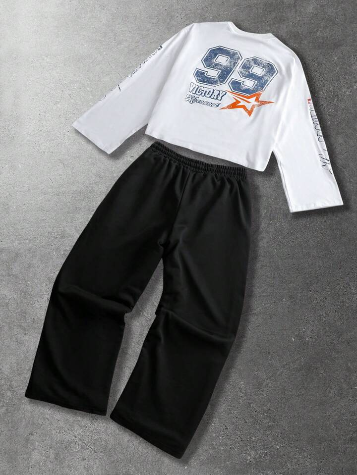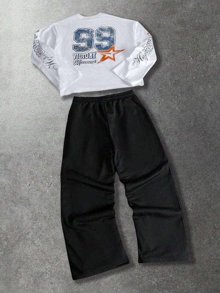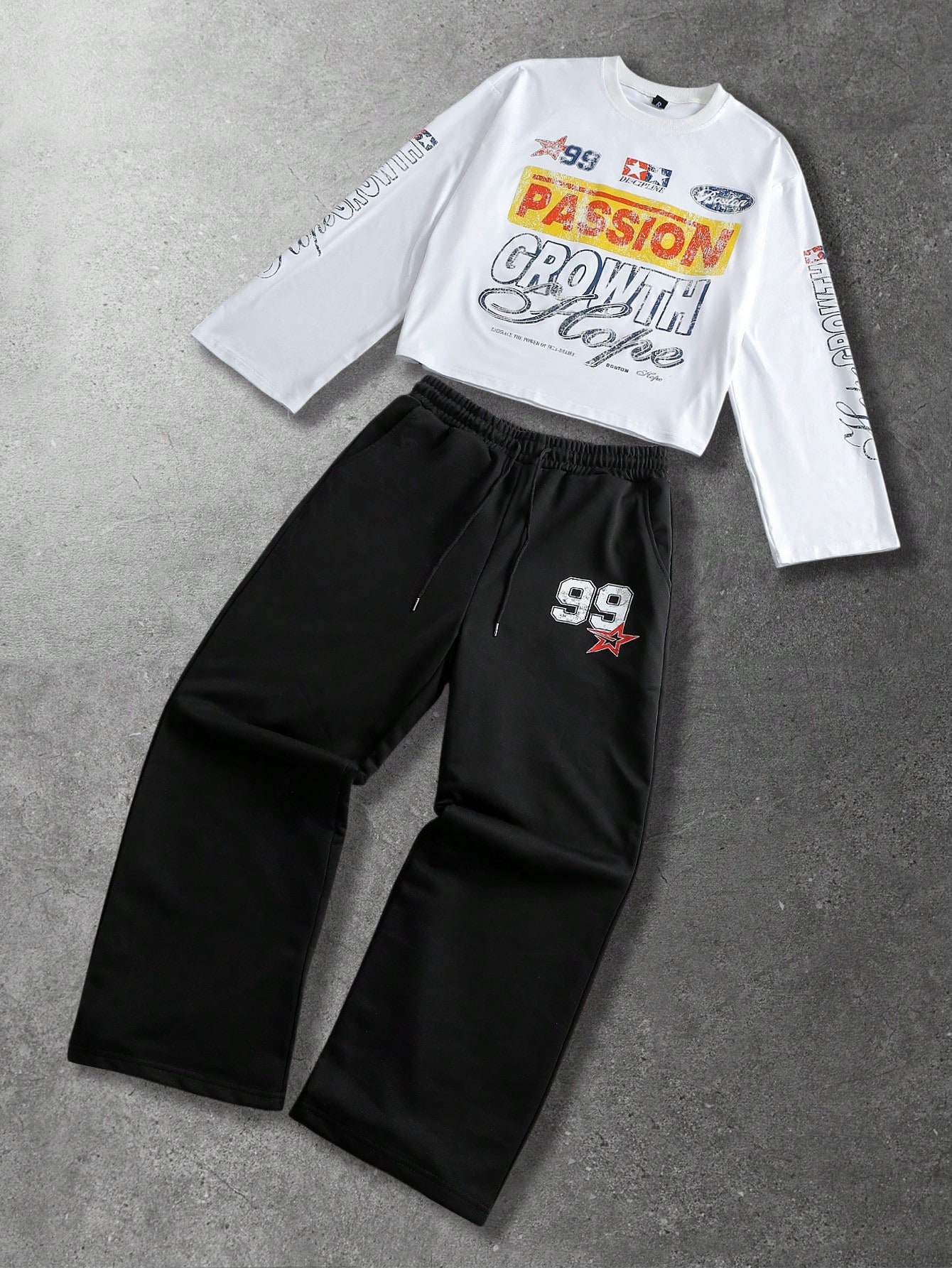 Set di maglia a girocollo con stampa e pantaloni della tuta da uomo