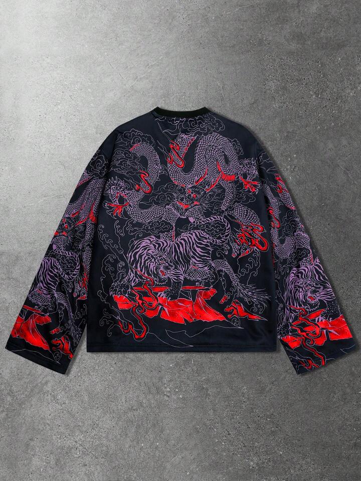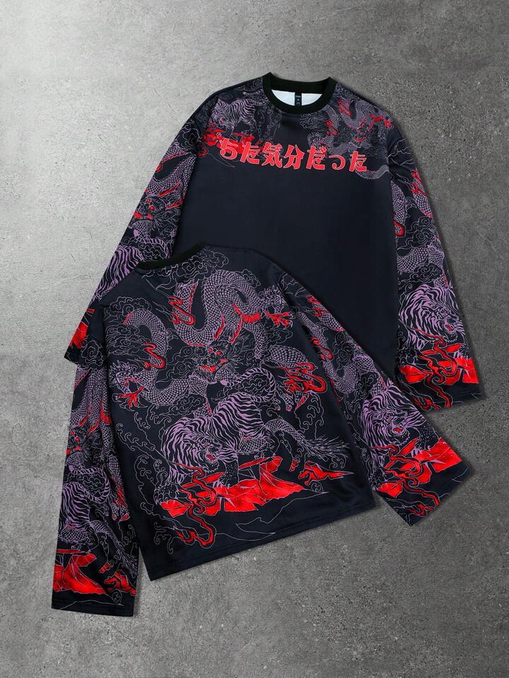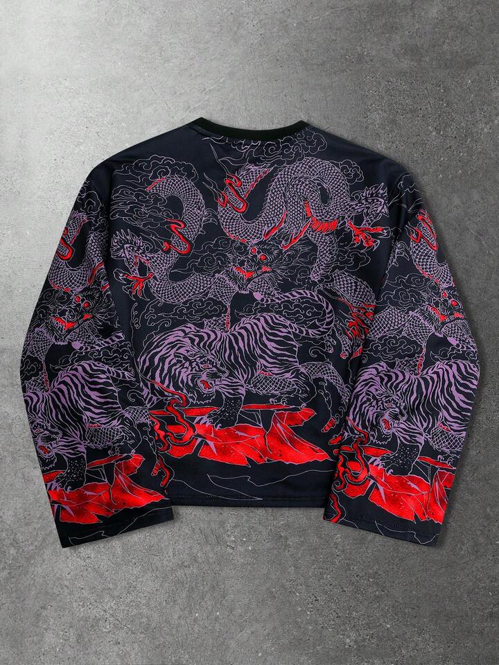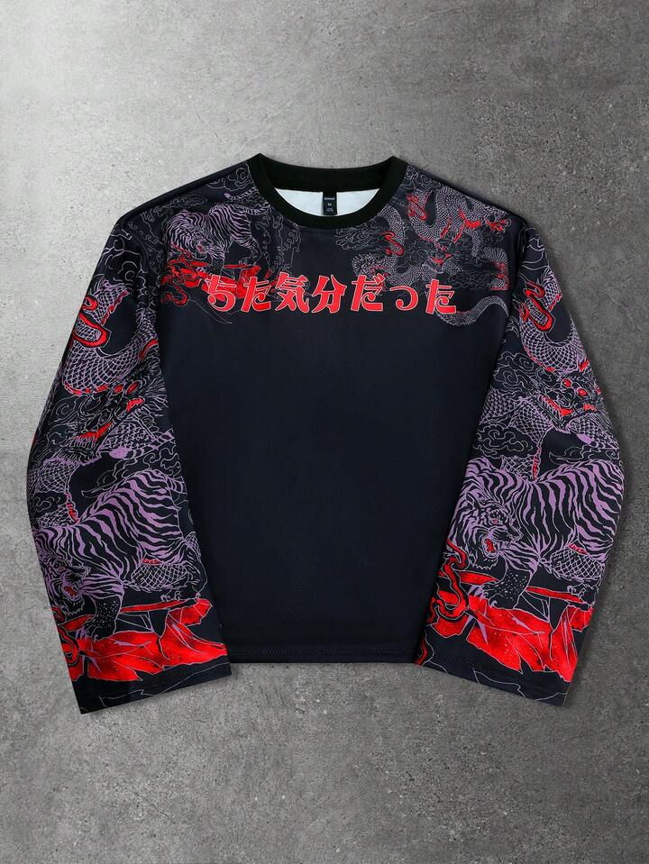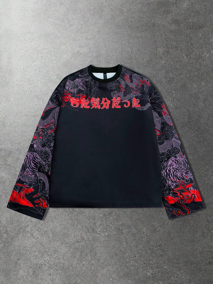 Maglietta a maniche lunghe con stampa da uomo, adatta per l'uso quotidiano in autunno/inverno