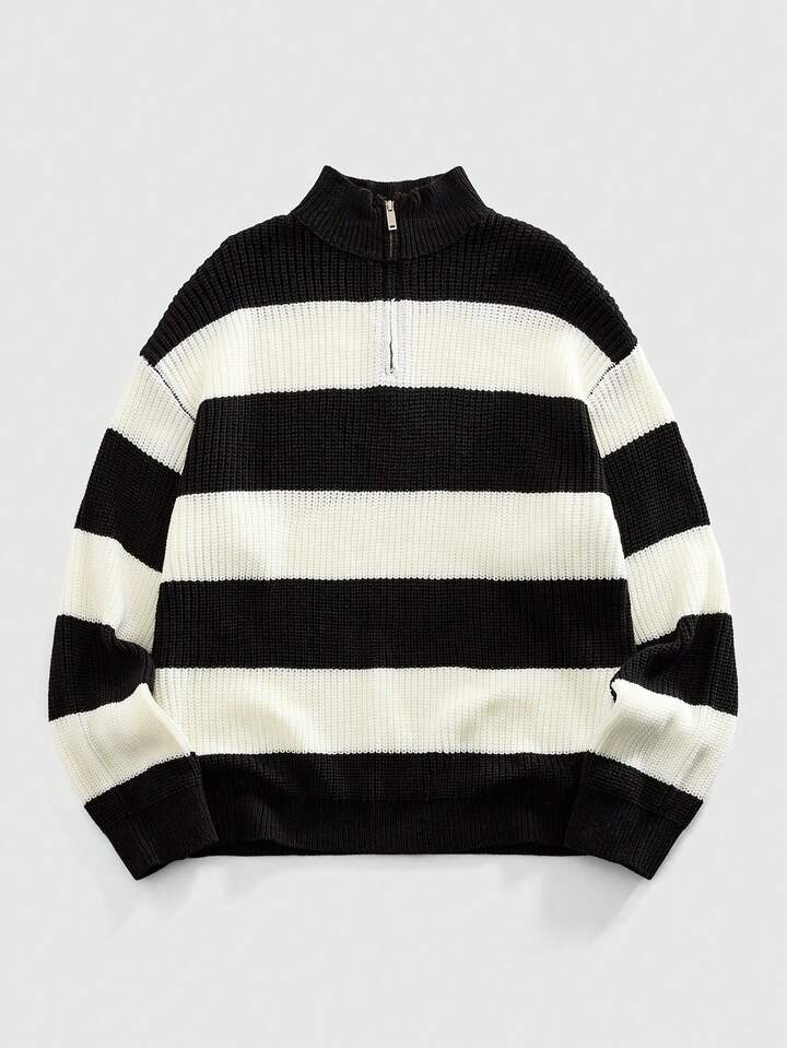 Maglione casual da uomo in maglia con piccolo collo alla coreana, di stile retrò