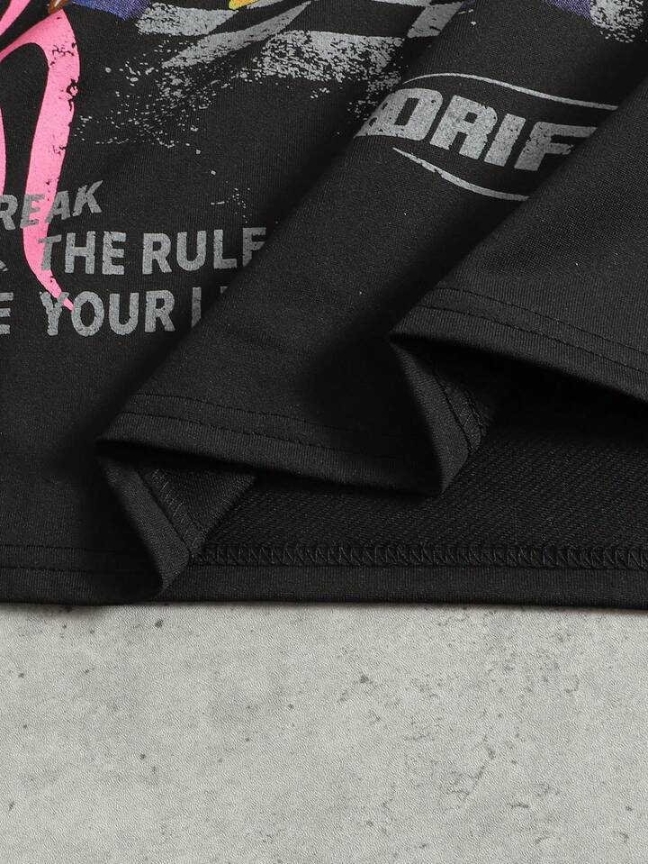 Set di maglietta e pantaloncini da uomo con stampa grafica di auto da corsa, vestibilità morbida