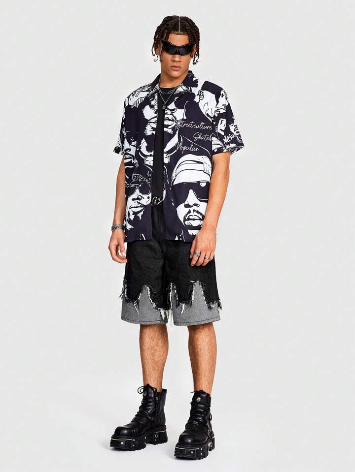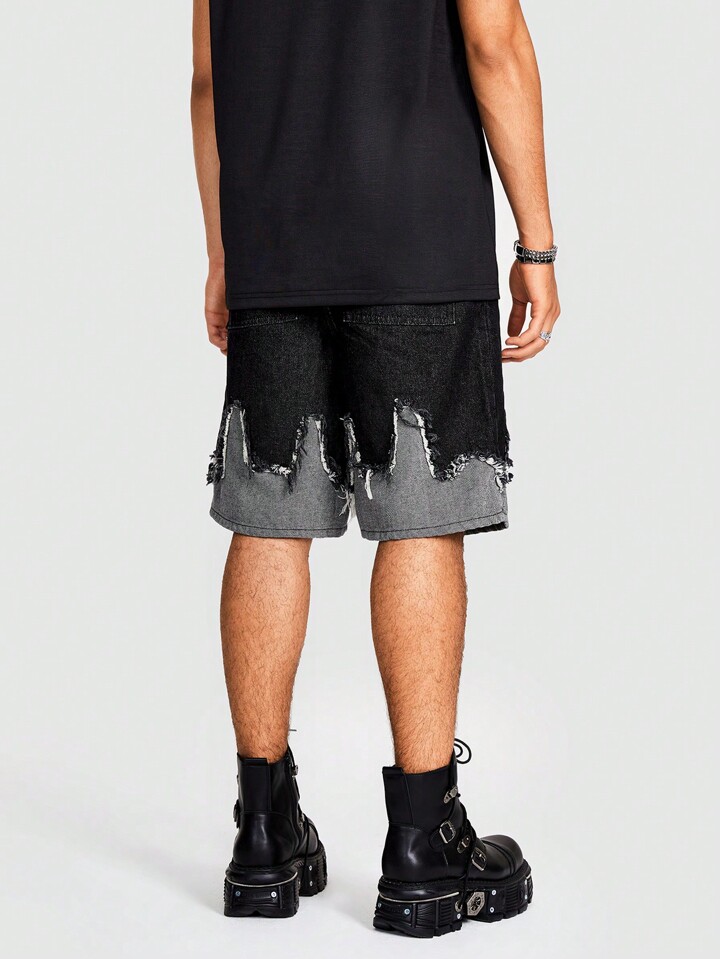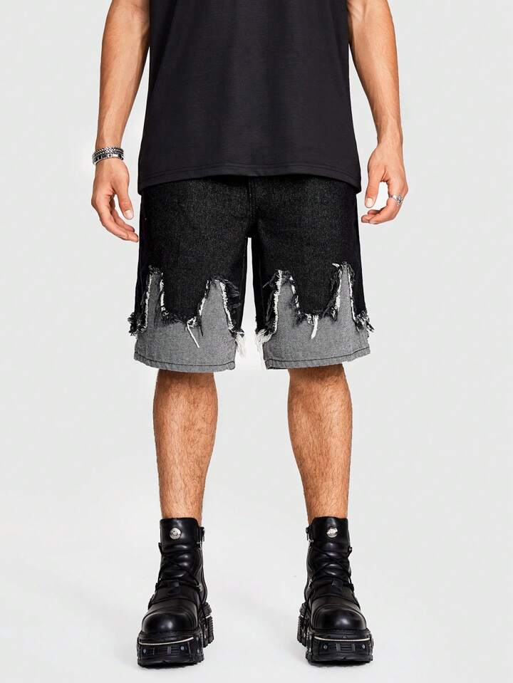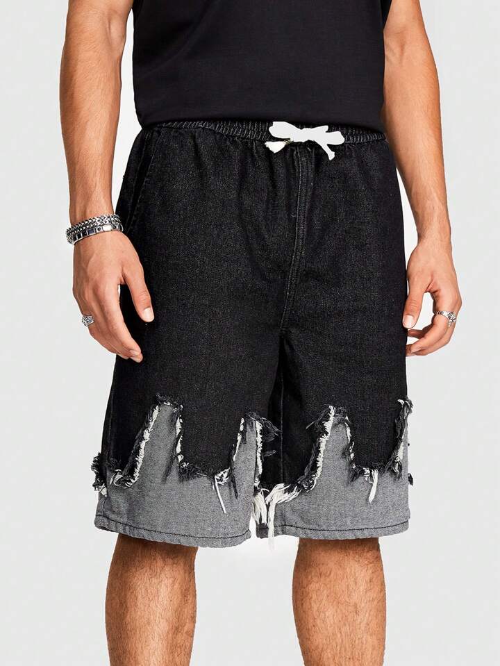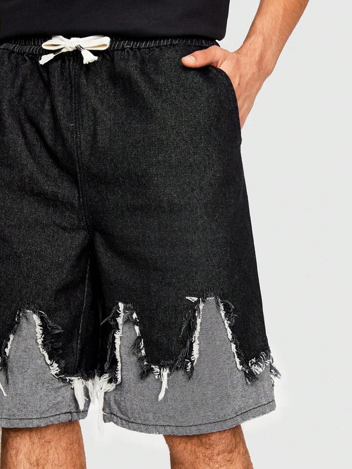 Pantaloncini in denim a vita con coulisse rilassata da uomo con tasche laterali e orlo sfilacciato