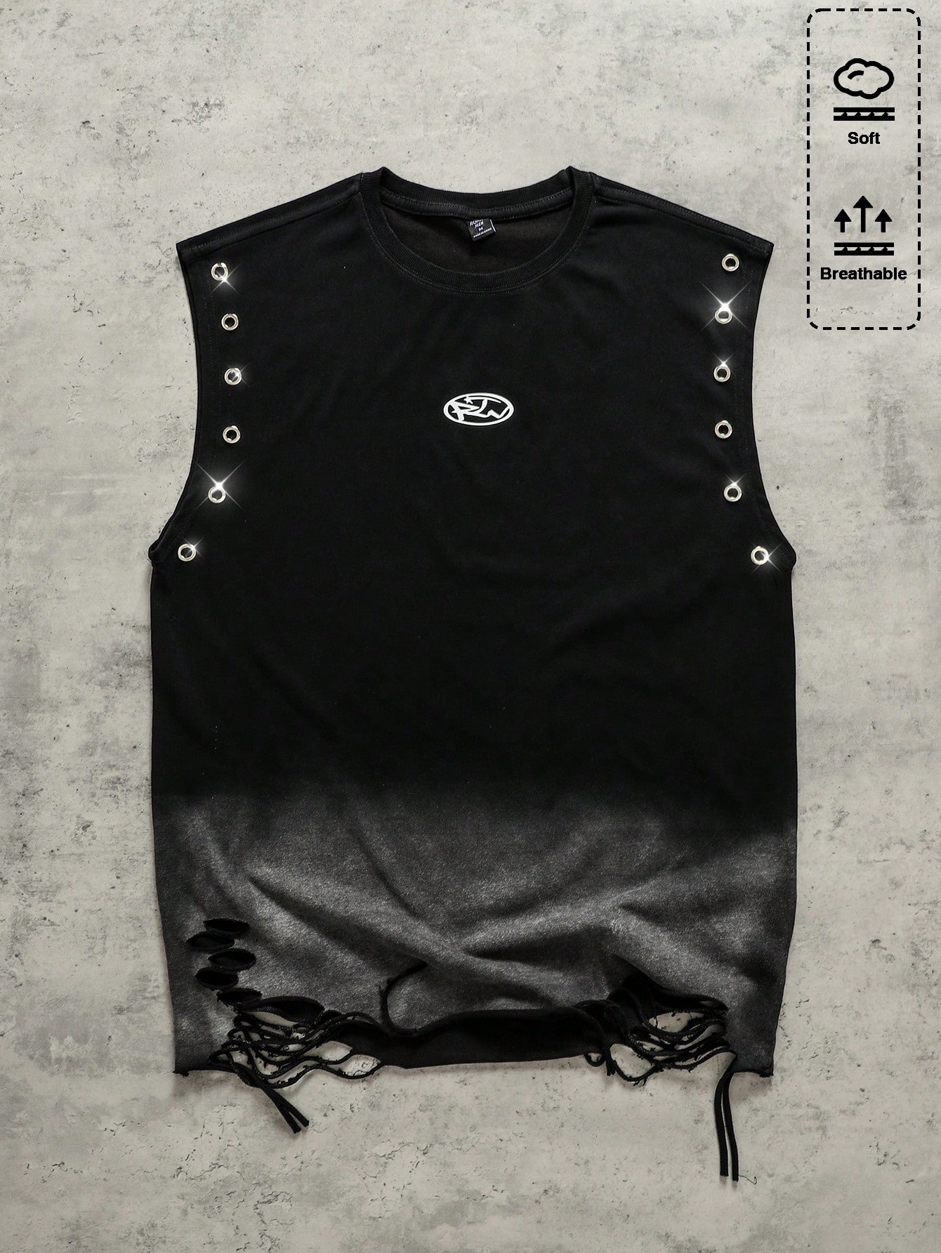 Gilet senza maniche nero con scollo rotondo da uomo, stile casual di strada