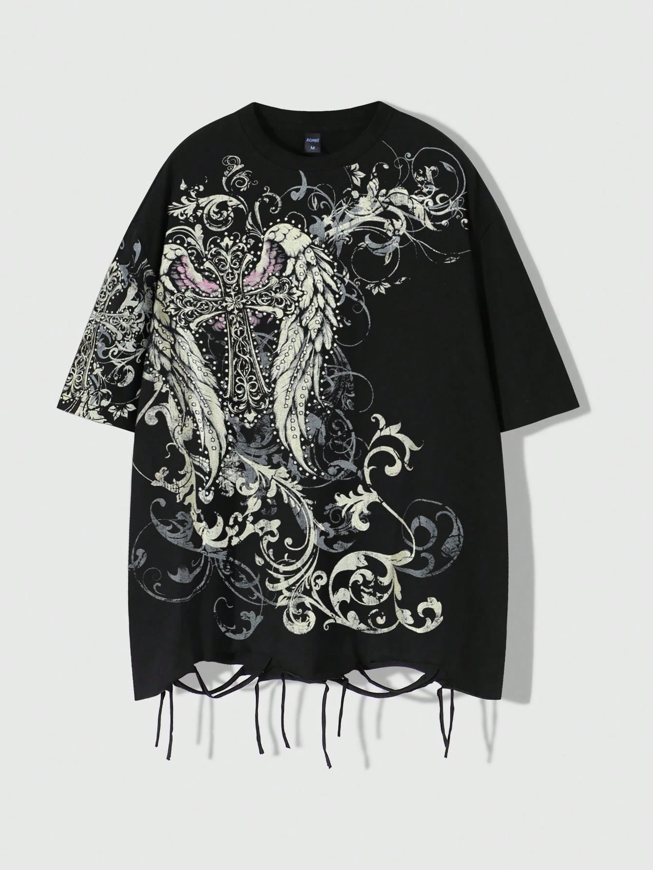 T-shirt casual da uomo a maniche corte, scollo rotondo, con stampa ad ali, versatile per uso quotidiano