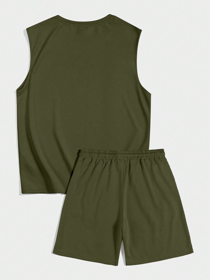 Abito corto e canotta a collo tondo con stampa slogan per uomo
