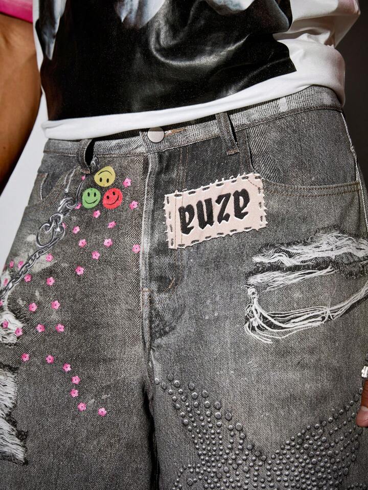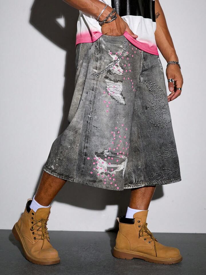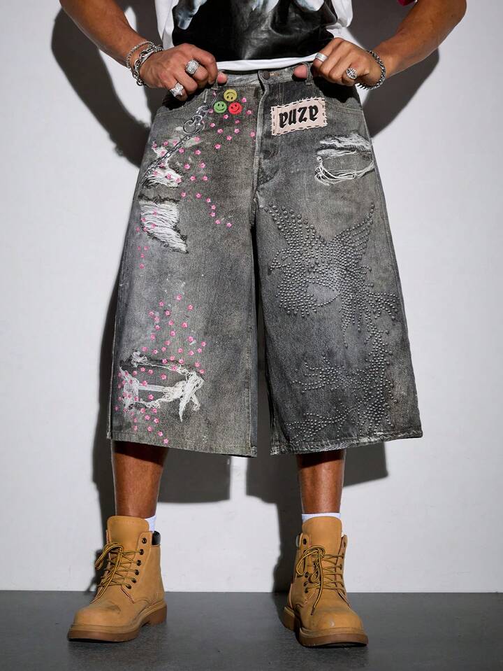 Pantaloni 3/4 in jeans da uomo con stampa grafica di strada, di moda, adatti per l'estate