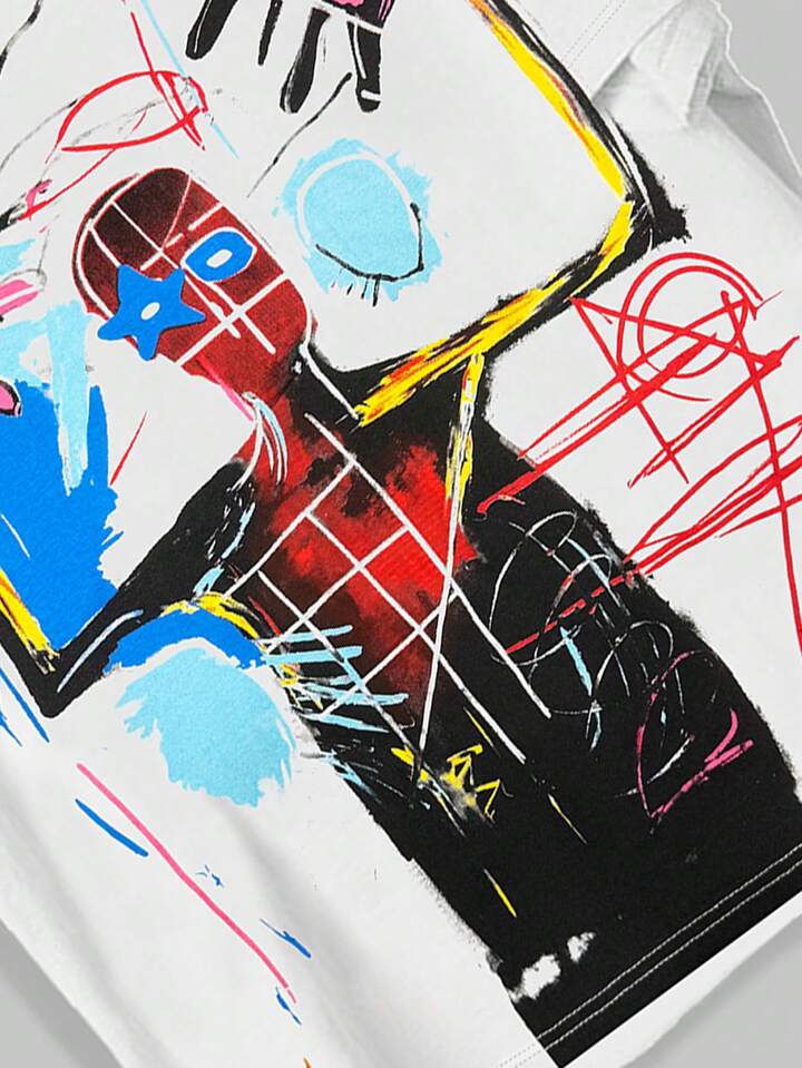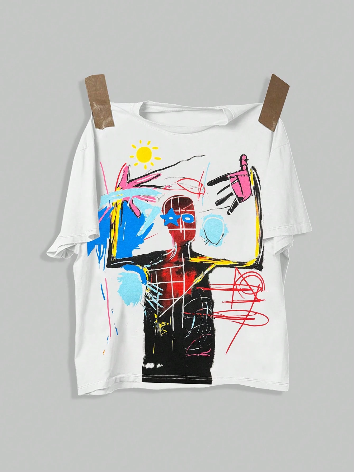 Street Life maglietta casual a maniche corte da uomo con stampa a graffiti cartoni animati, versatile per l'estate