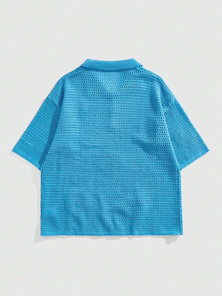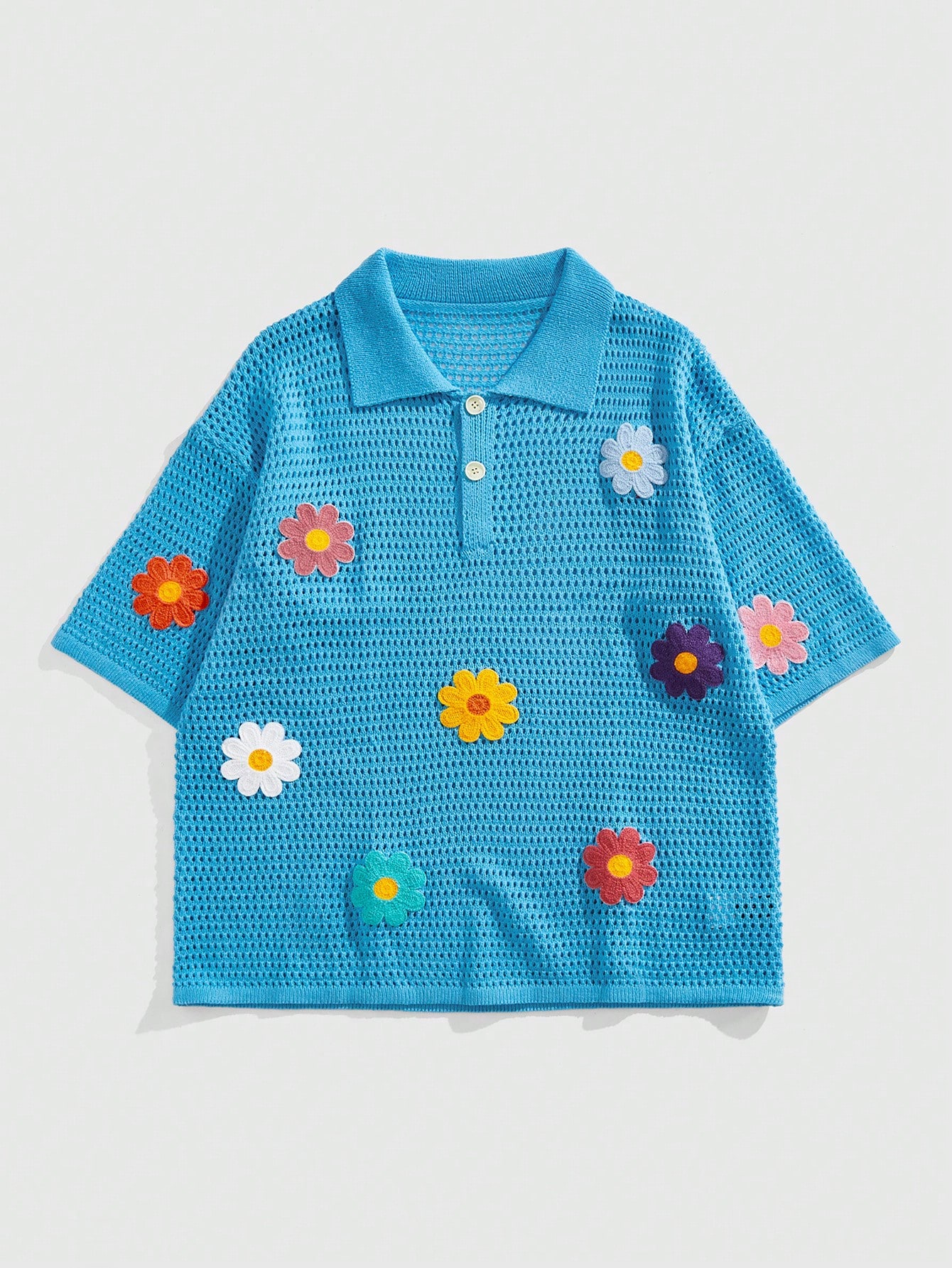 Street Life Camicia polo da uomo con ricamo floreale, ampia con spalle cadenti e lavorazione a giorno, ottima per le vacanze