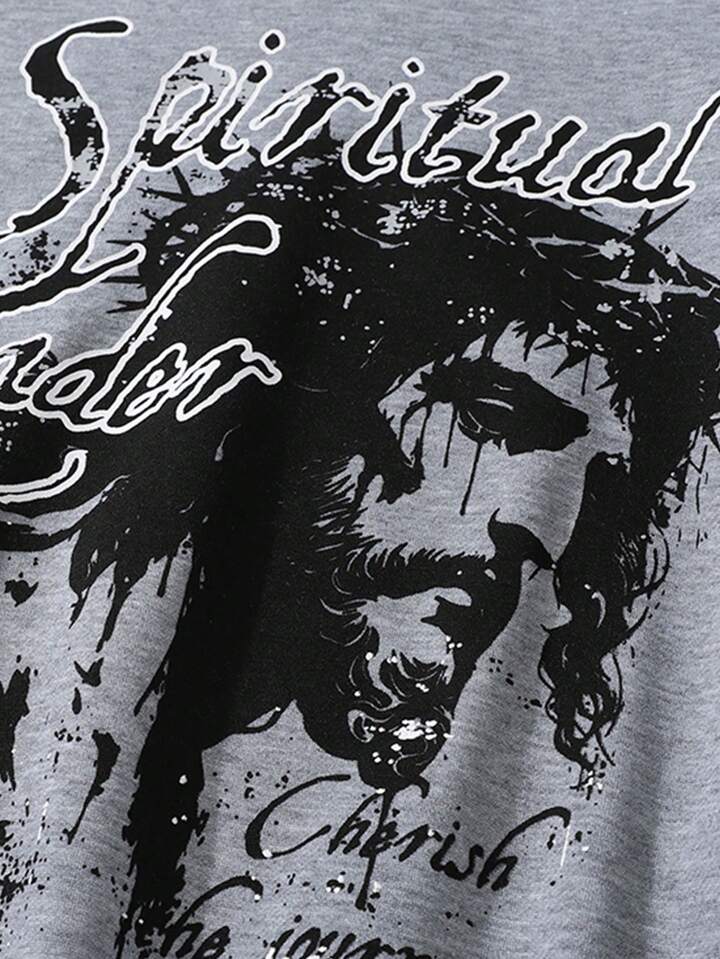 Felpa con cappuccio casual versatile da uomo, a maniche lunghe, con stampa da strada