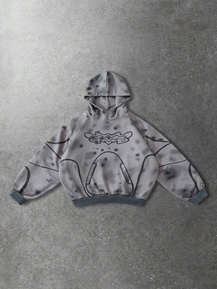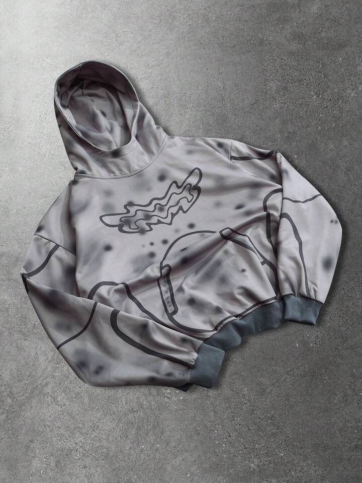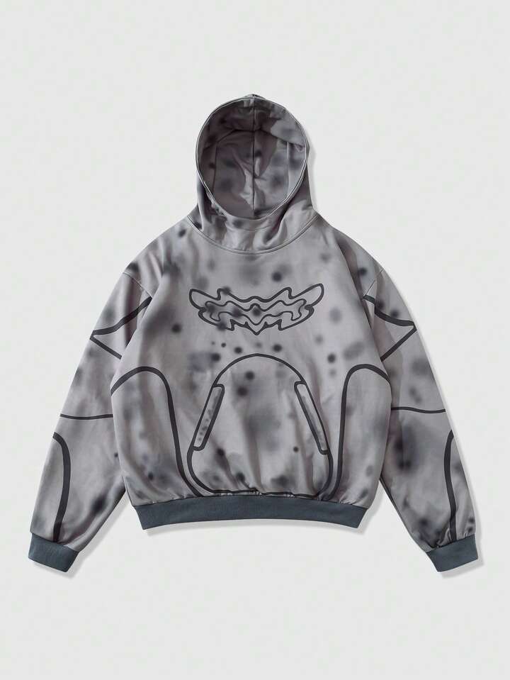 Felpa con cappuccio casual a maniche lunghe con stampa, stile casual da strada per uomo