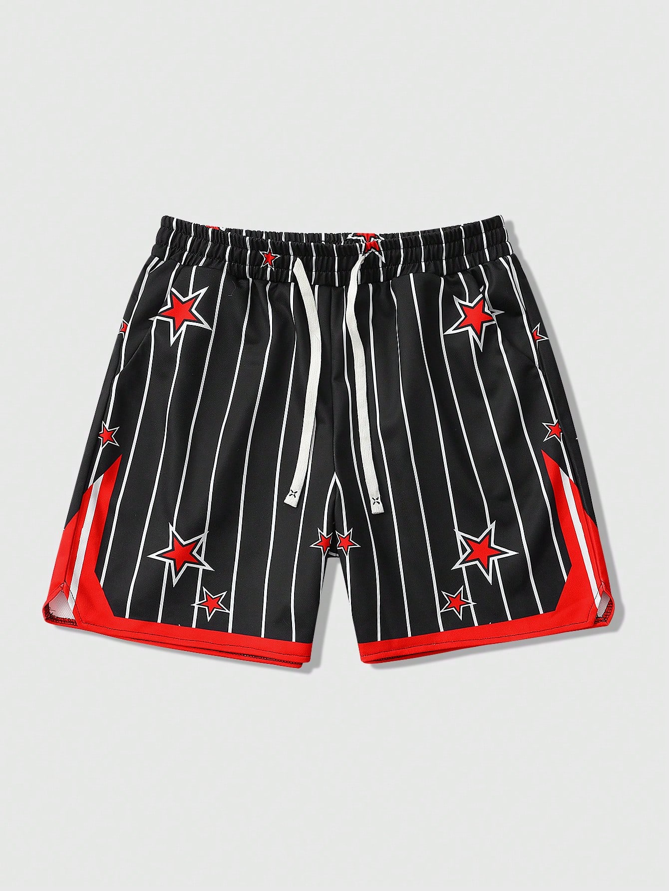 Pantaloncini da basket da uomo estivi casual con stampa a quadri e a lettere, con nastro a contrasto, orlo con coulisse in vita