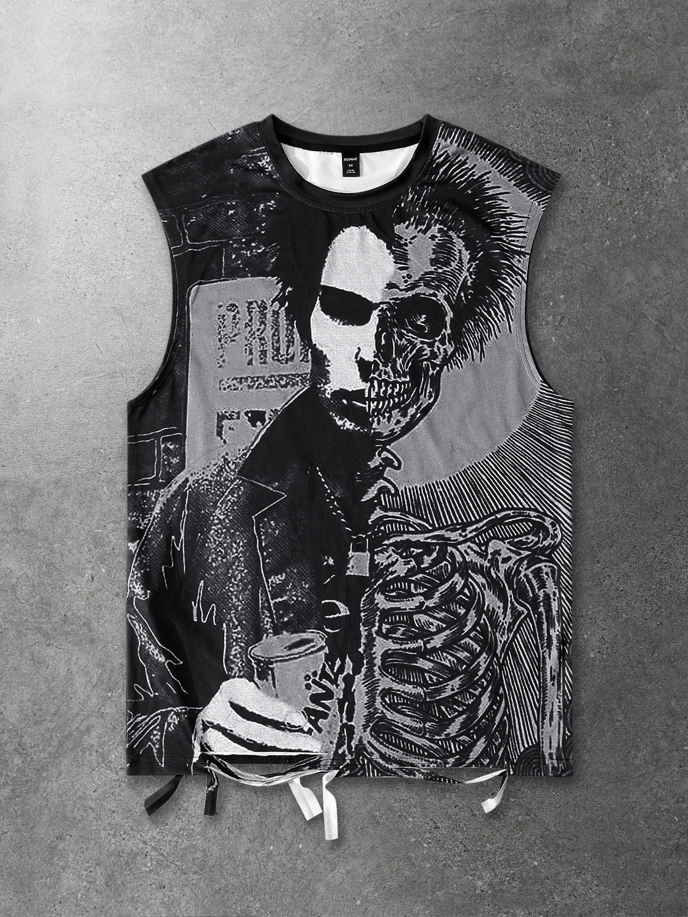 Canotta grafica stile di strada estiva alla moda con effetto vissuto per uomo