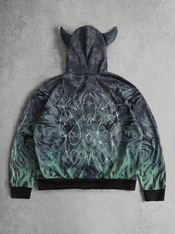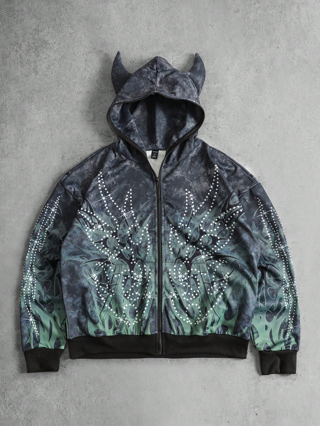 Felpa con cappuccio e chiusura lampo da uomo, stampa tie-dye, manica lunga, vestibilità morbida