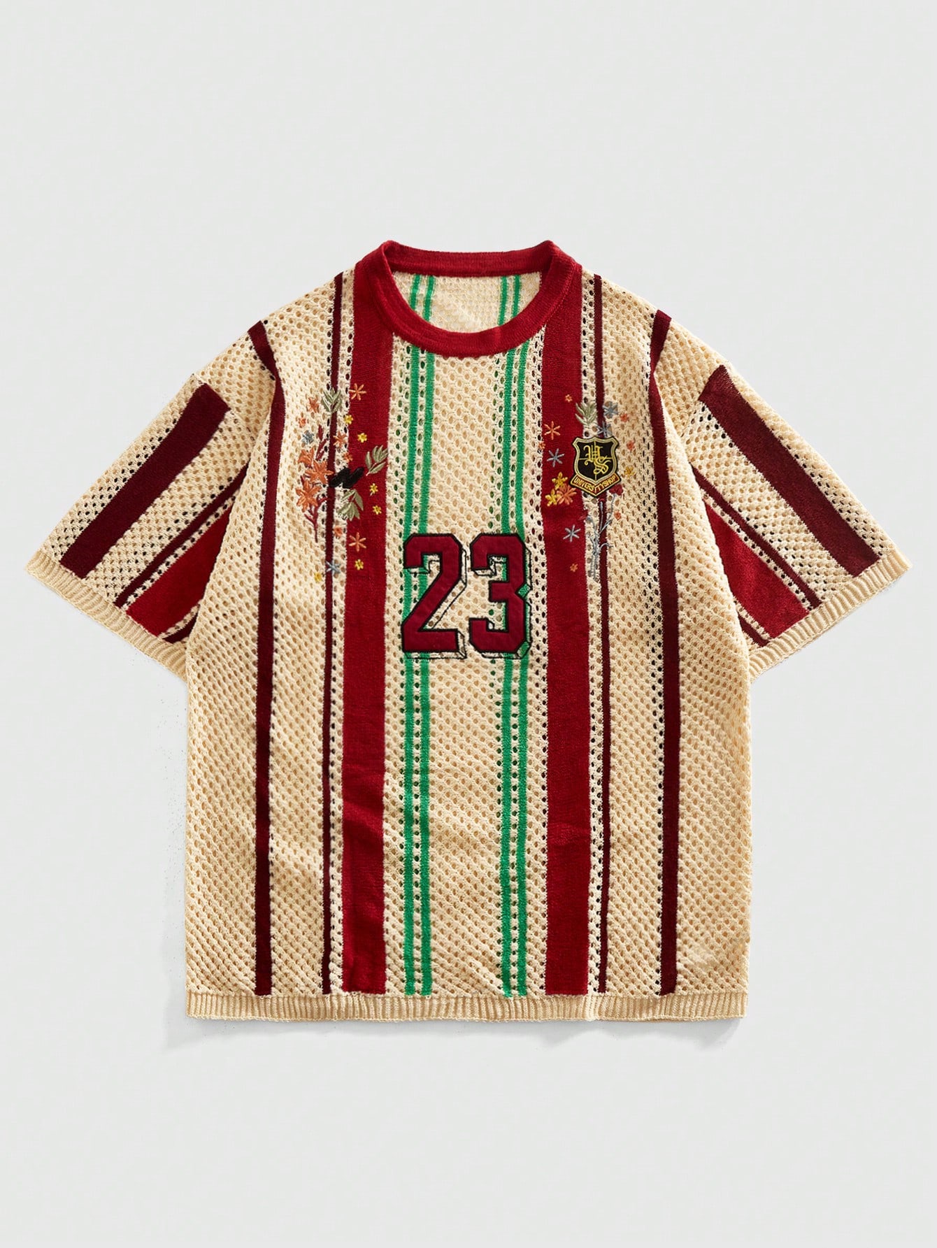 Maglietta sportiva da uomo con scollo a V e ricamo, abbigliamento casual retrò