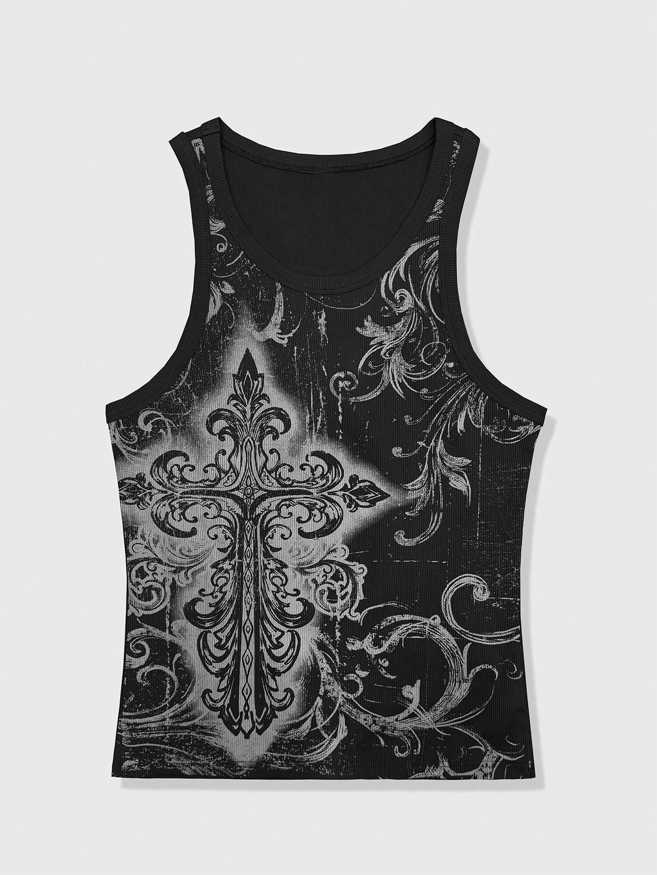 Canotta da uomo stile punk di strada Y2K, con stampa a croce e pianta, per l'estate