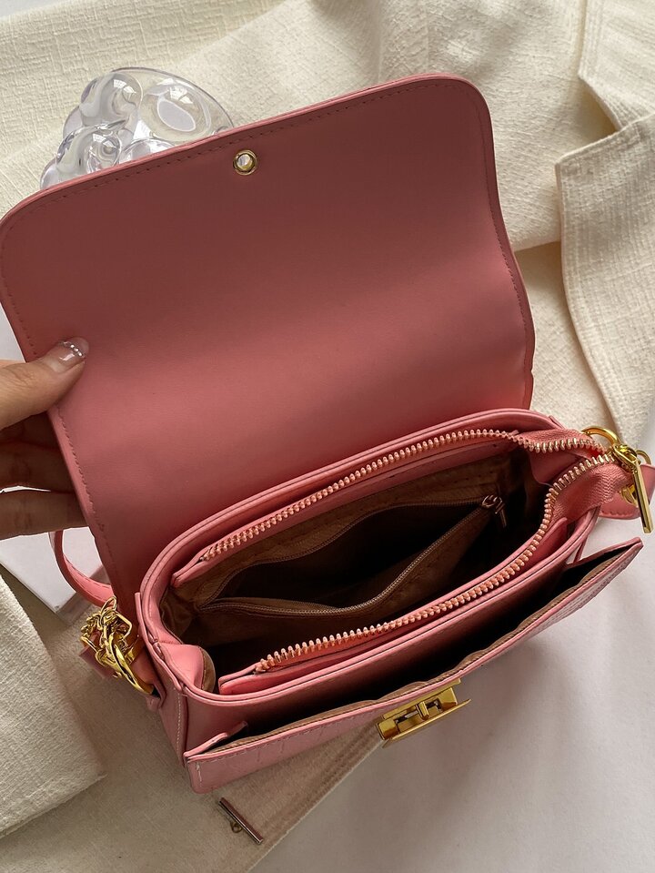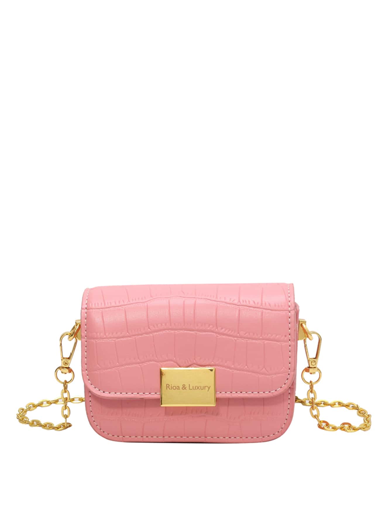 Borsa a catena mini effetto coccodrillo patta