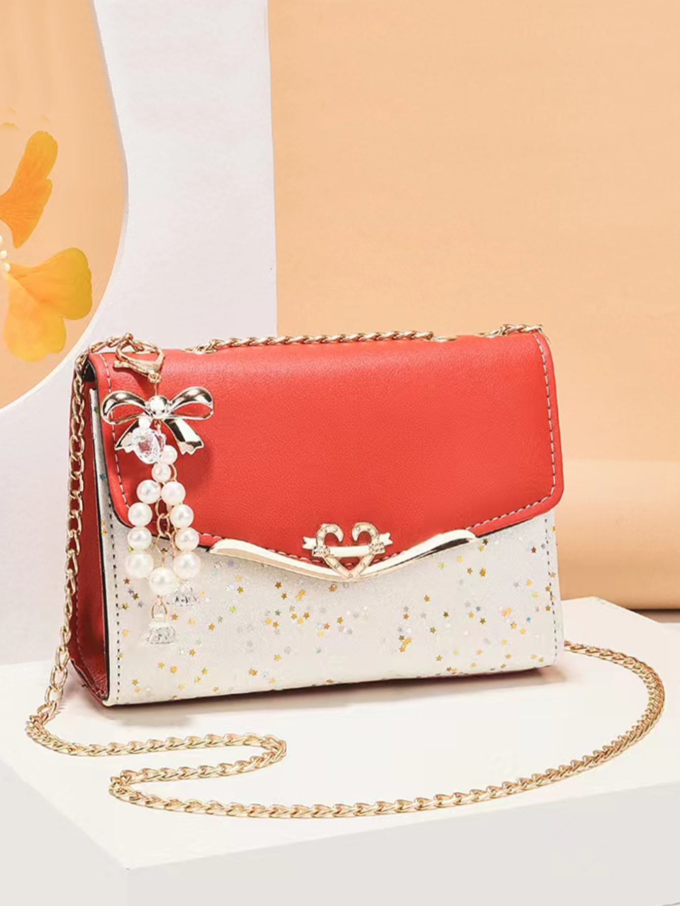 Borsa quadrata mini decorazione di perle finte patta