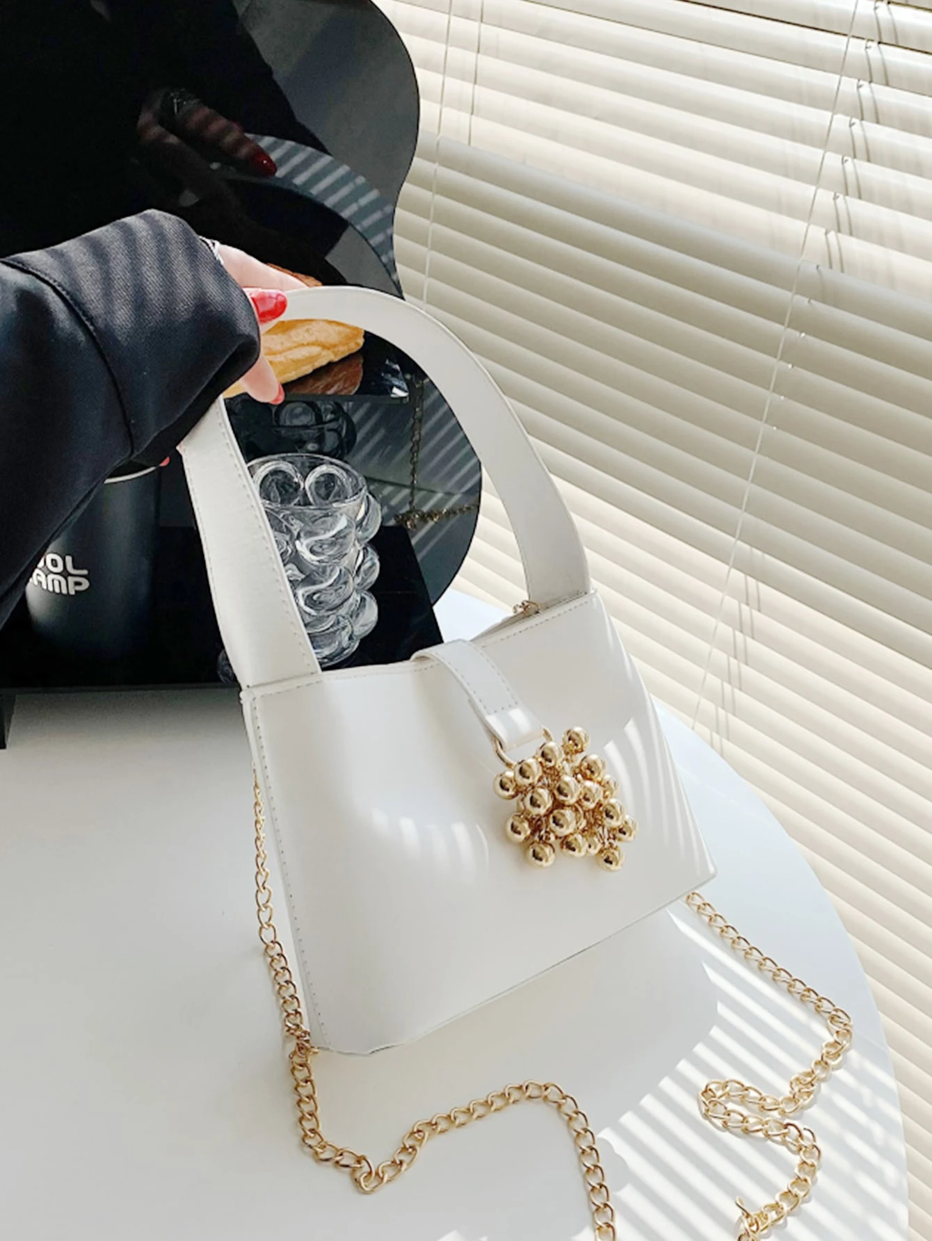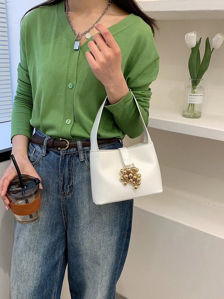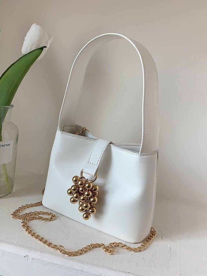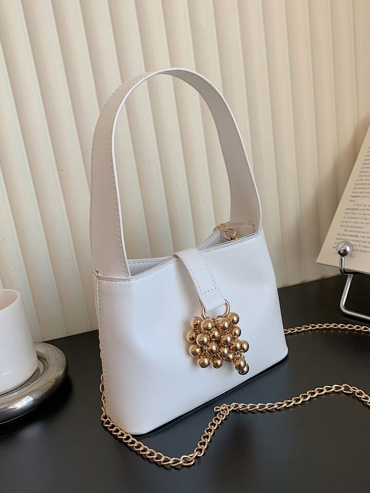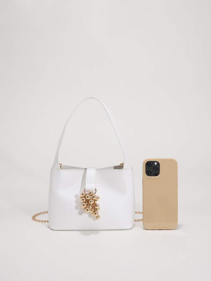 Borsa mini a secchiello metallo con perline