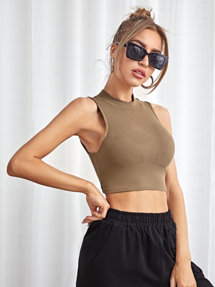 Canotta piccola in maglia a costine a collo alto