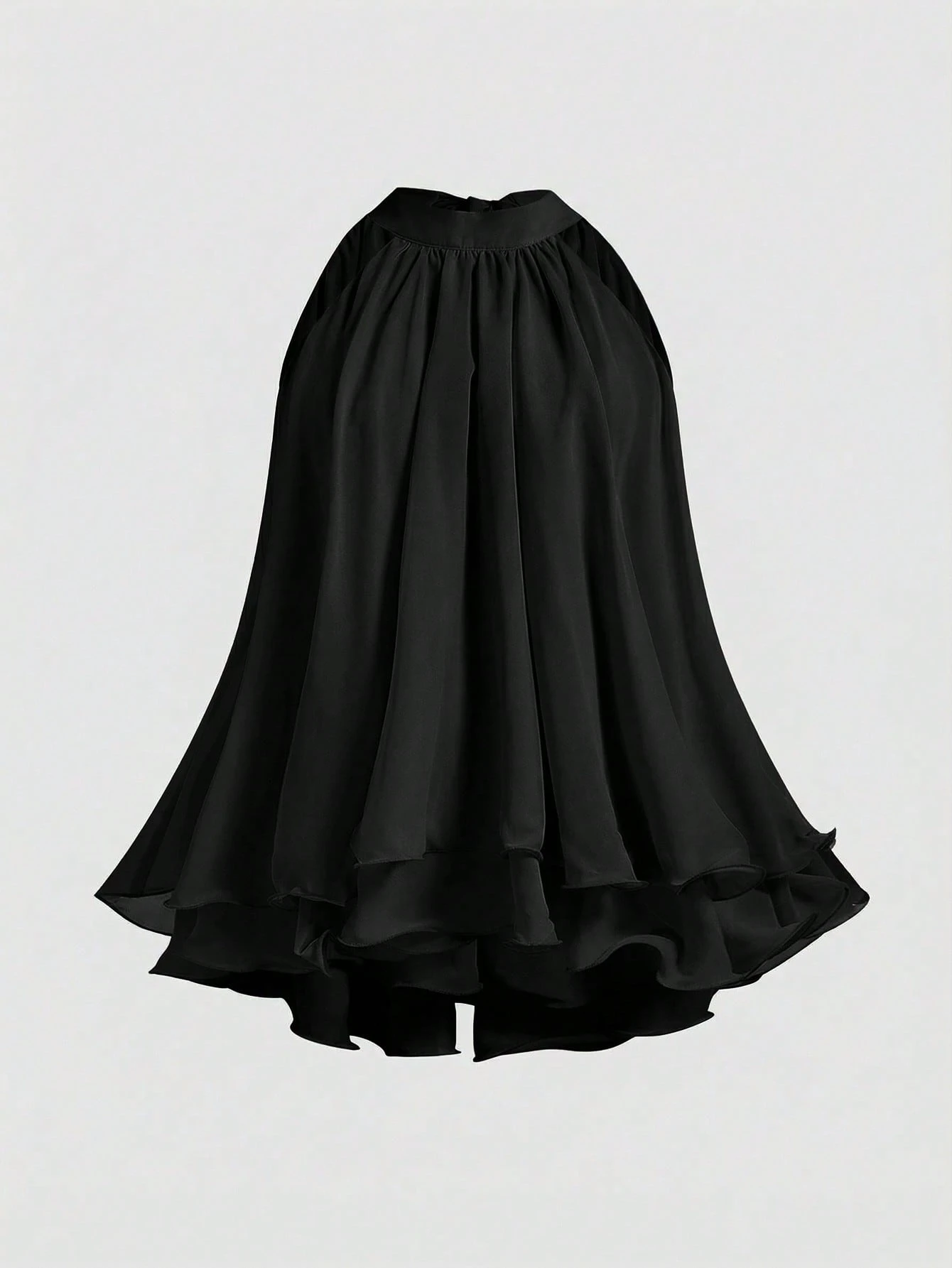 Blusa in chiffon color albicocca con volant e collo a cravatta per donne