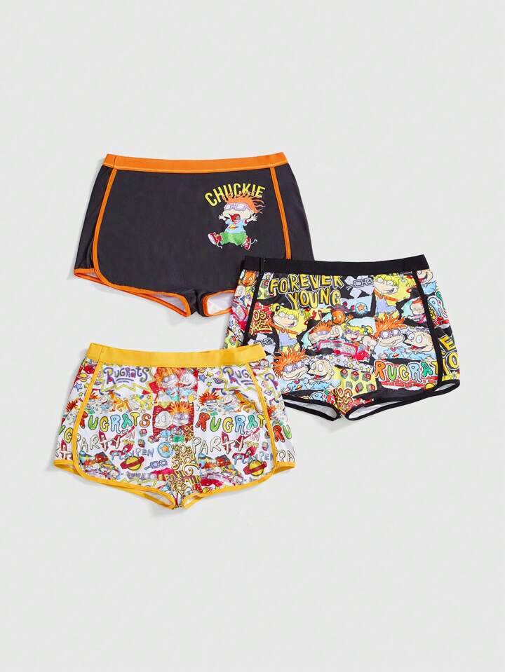 Nick 90's X ROMWE 3 pezzi/confezione Boxer da donna con motivo a cartoni animati
