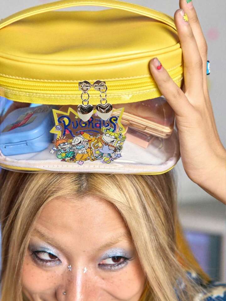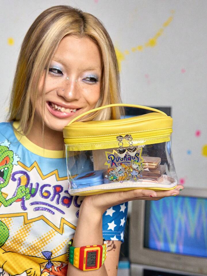 Nick 90's X ROMWE Borsa cosmetica trasparente di grande capacità con motivo a cartone animato per le donne
