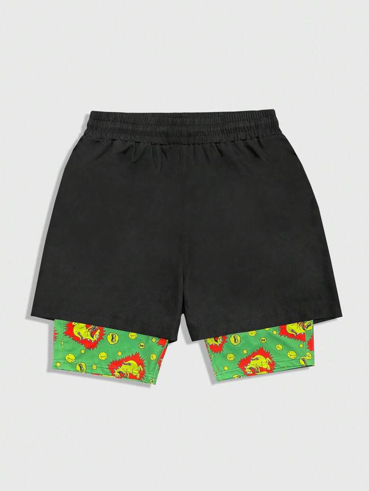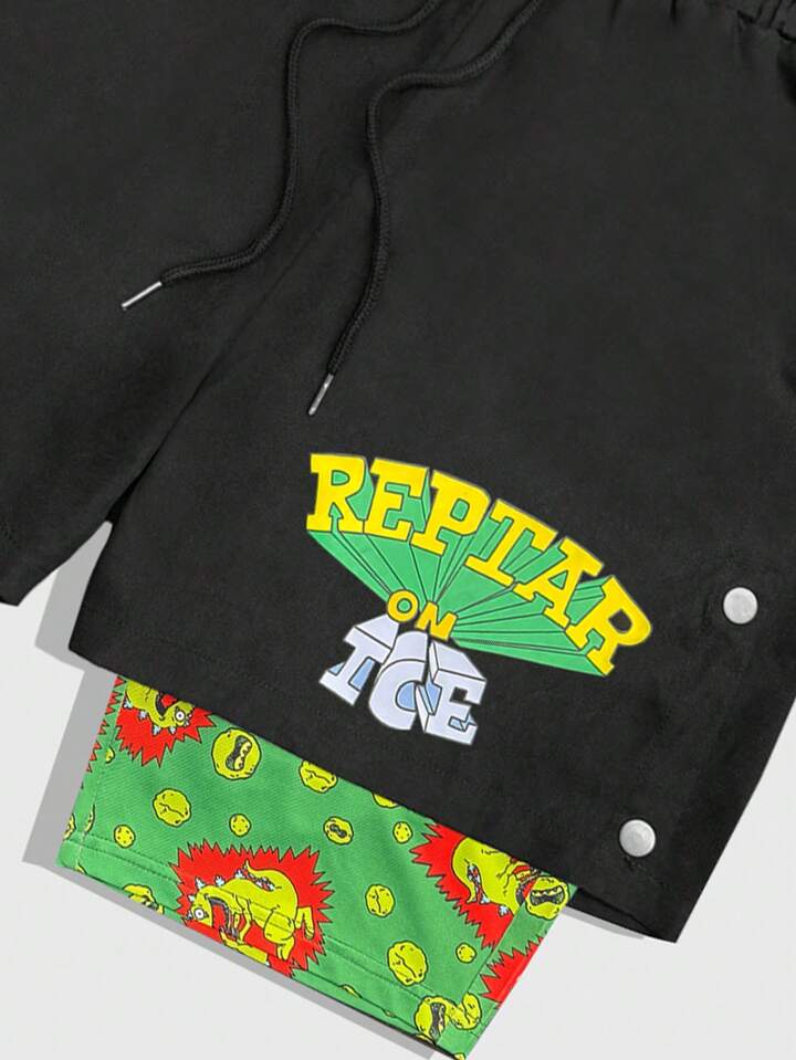 Nick 90's X ROMWE Pantaloncini casual da uomo con stampa di lettere e cartoni animati, vita con coulisse, streetwear