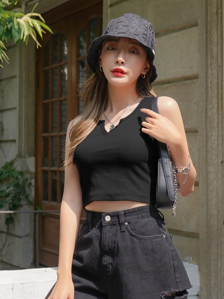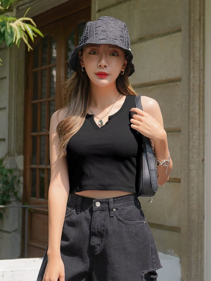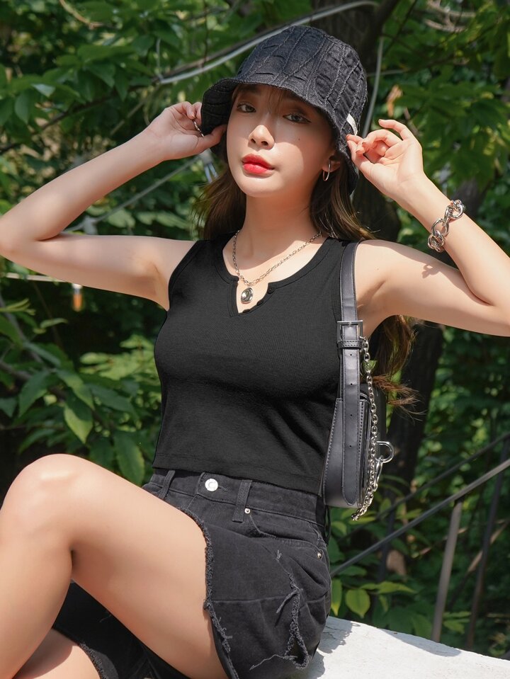 Bretelle A coste Bottone frontale Colore unico Casual
