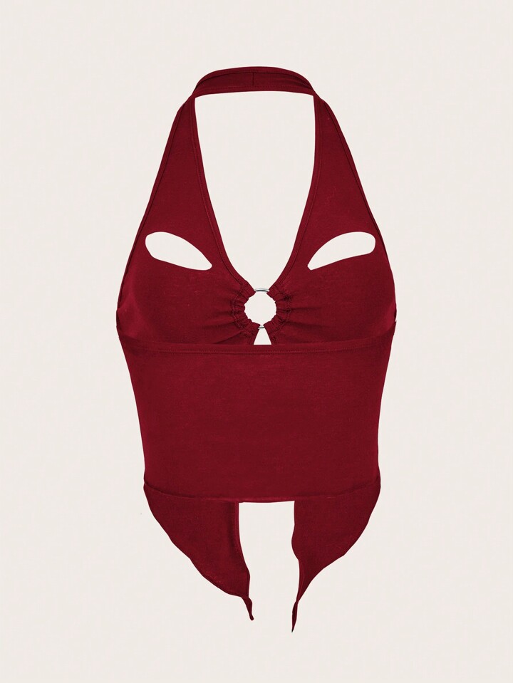 Top halter con anello ritagliato davanti orlo asimmetrico