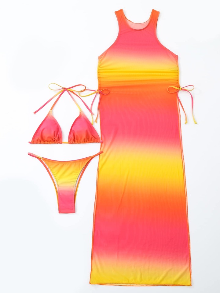 Set bikini ombre a triangolo con halter per la spiaggia estiva con copertura