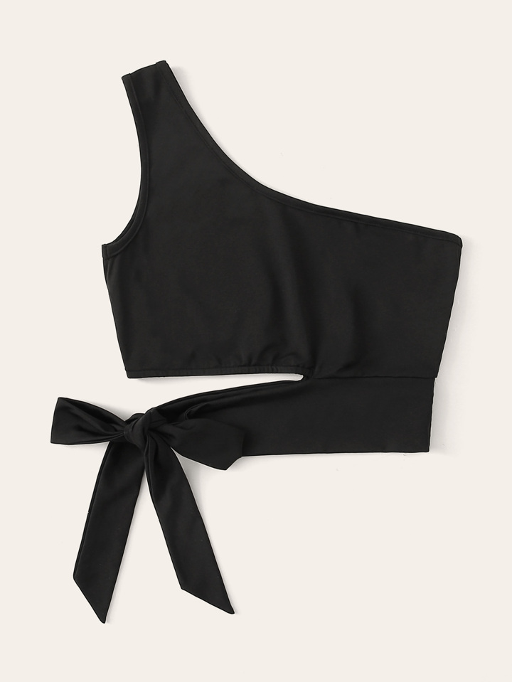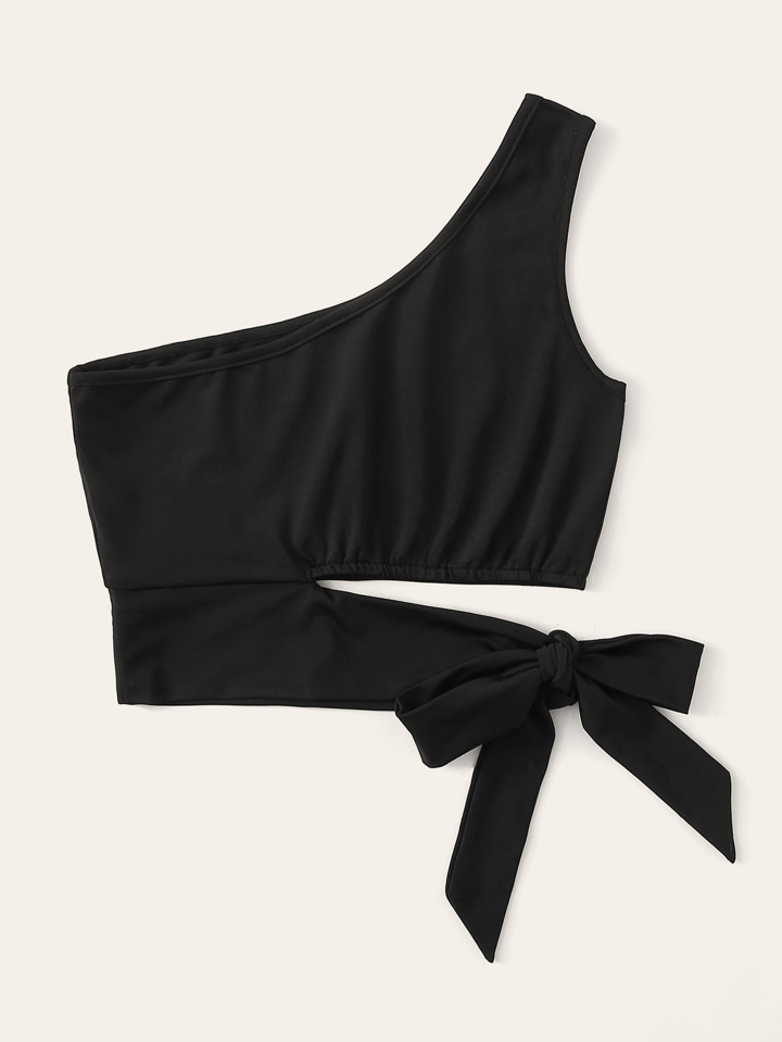 Top con taglio e nodo sul lato e monospalla