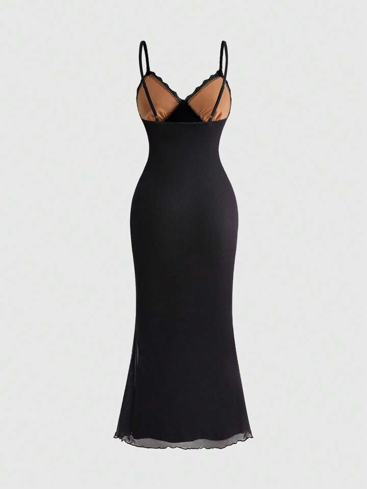 PETITE Abito lungo da donna con stampa della Vergine Maria e sovrapposizione in rete