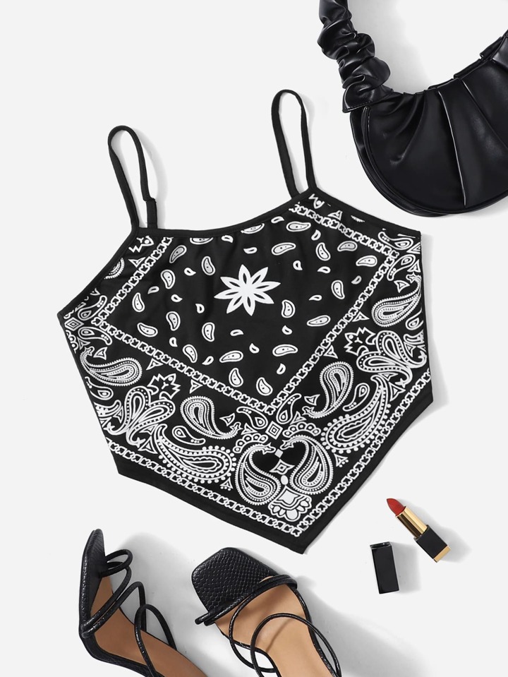 Top con bretelle sottile stampa Paisley con nodo dietro
