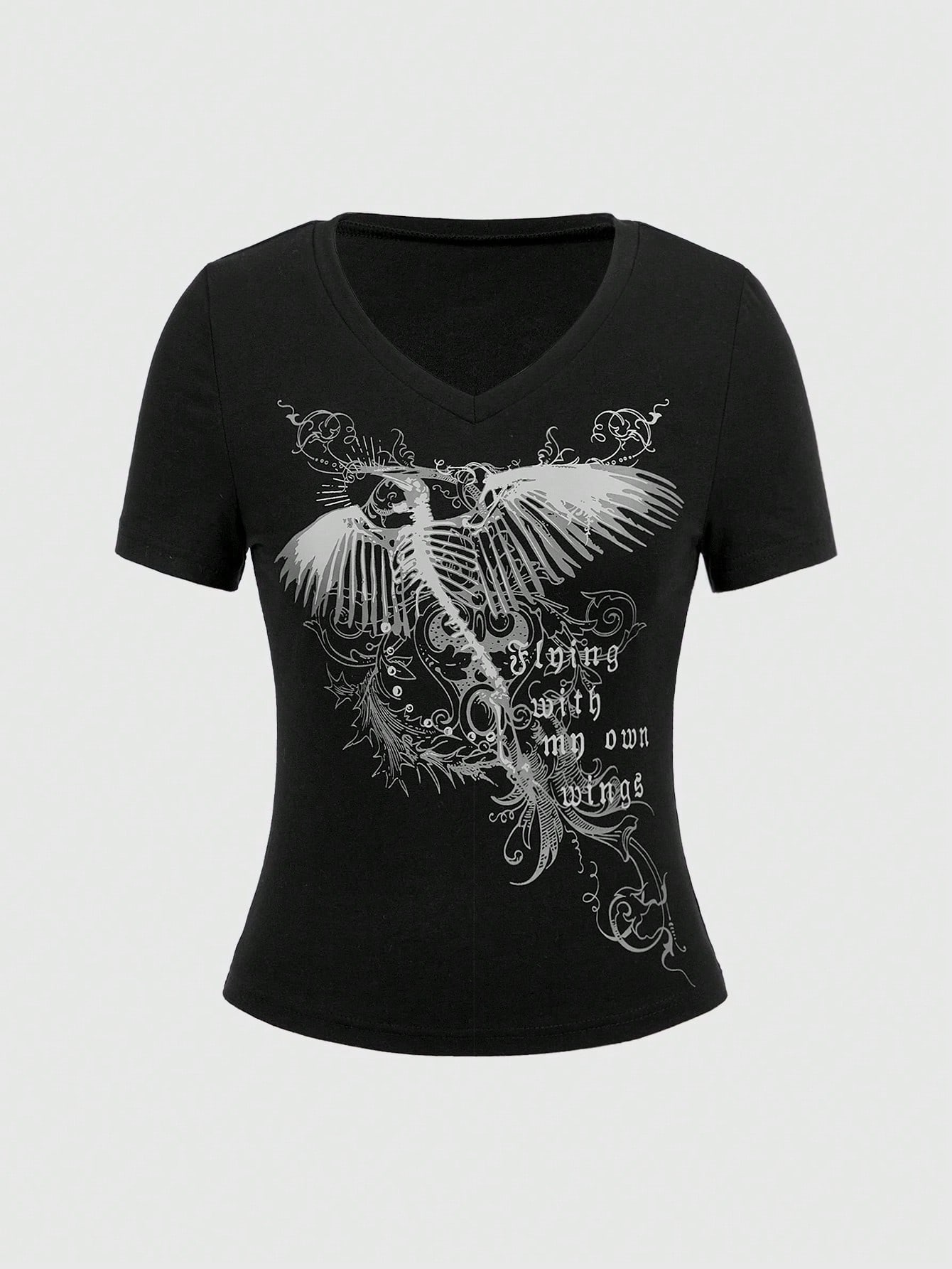 Paola Cardenas e Oliveira Maglietta A Maniche Corte A Vintage A Stampa Per Donne, Aderente E A Collo A V
