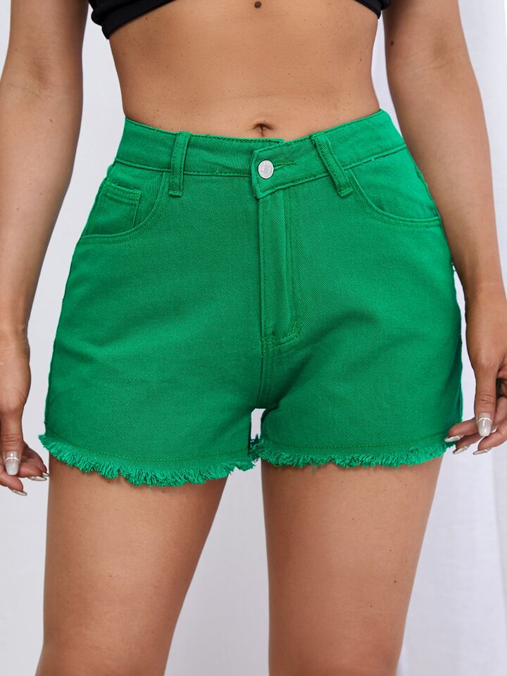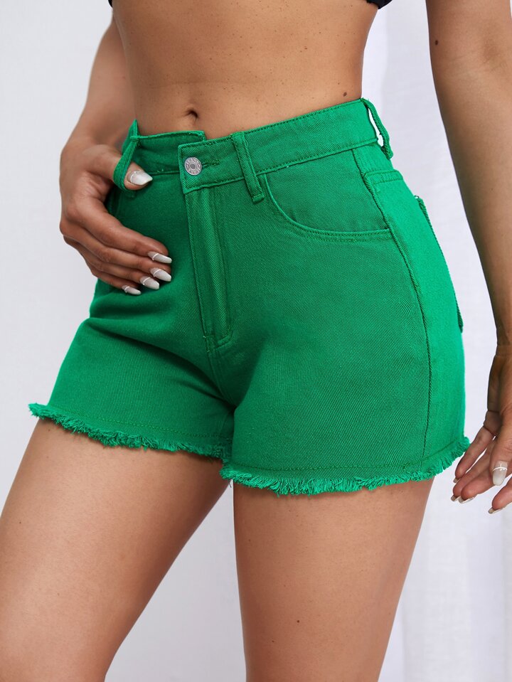 Shorts in denim dettaglio toppa orlo grezzo