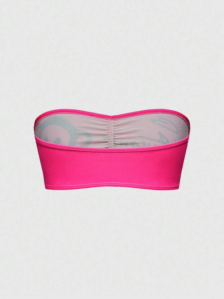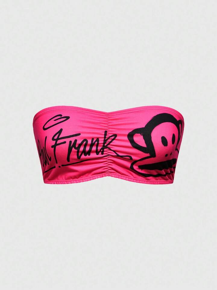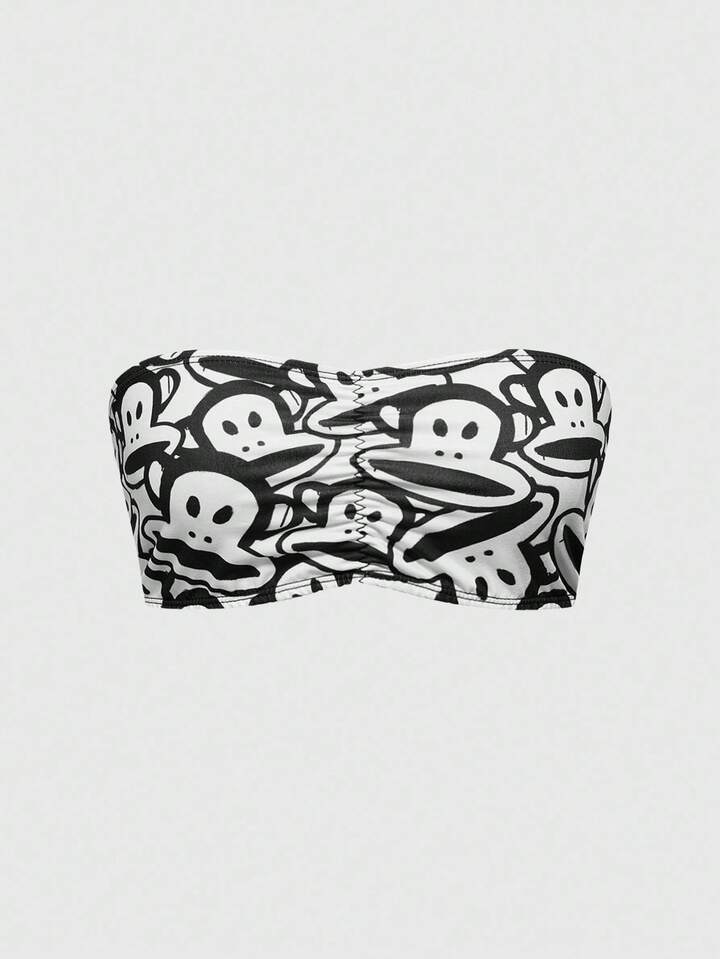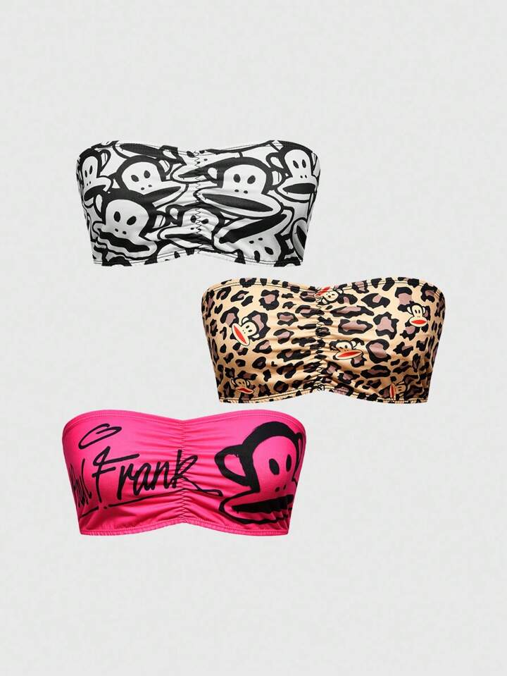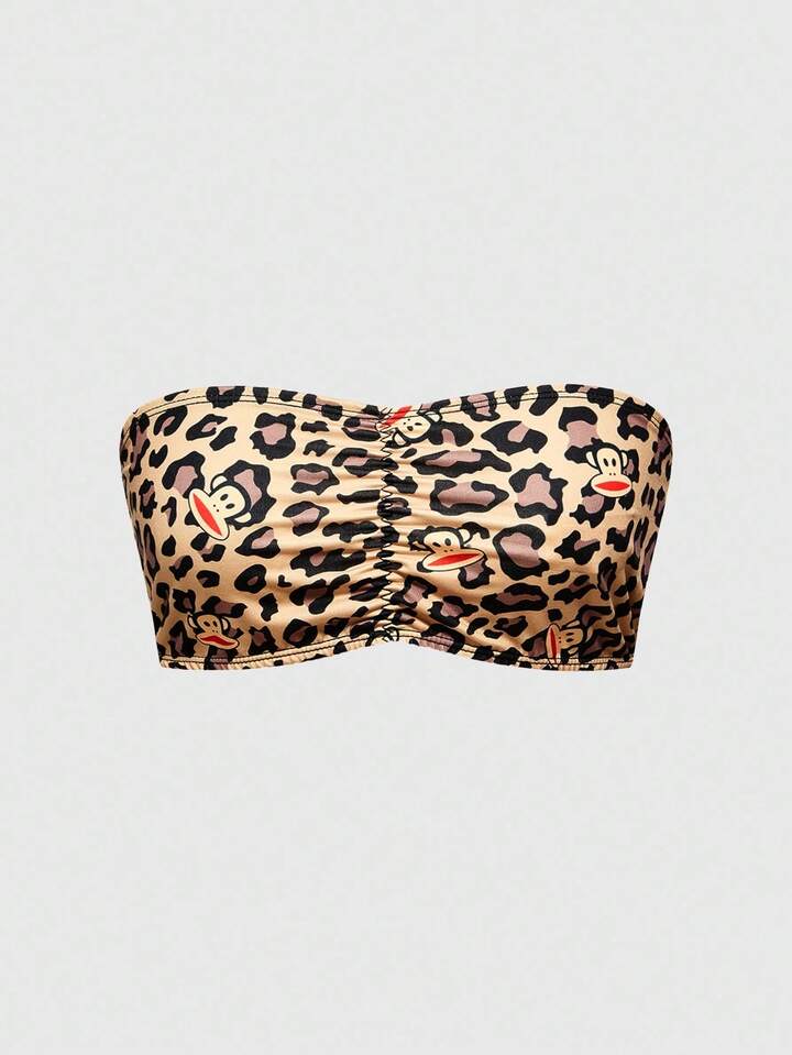 Paul Frank X ROMWE Set di reggiseno corto a tubo con motivo cartoonesco e leopardo
