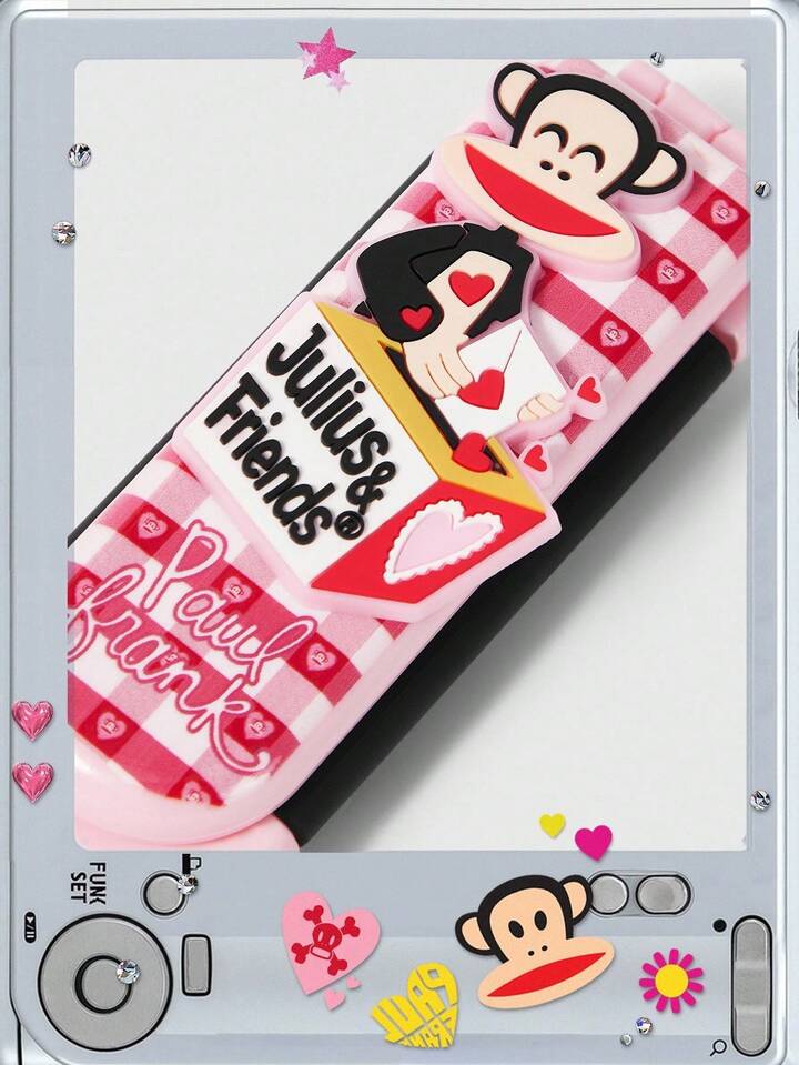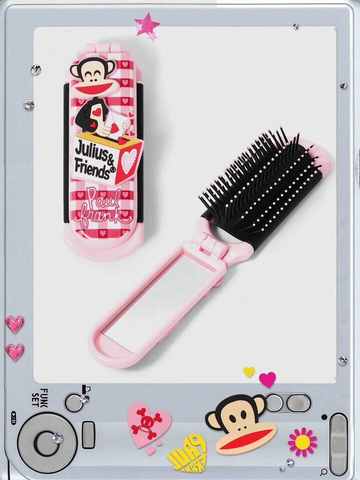Paul Frank X ROMWE Specchietto compatto pieghevole con grafica di personaggi dei cartoni animati personalizzata e spazzola, articoli per il ritorno a scuola